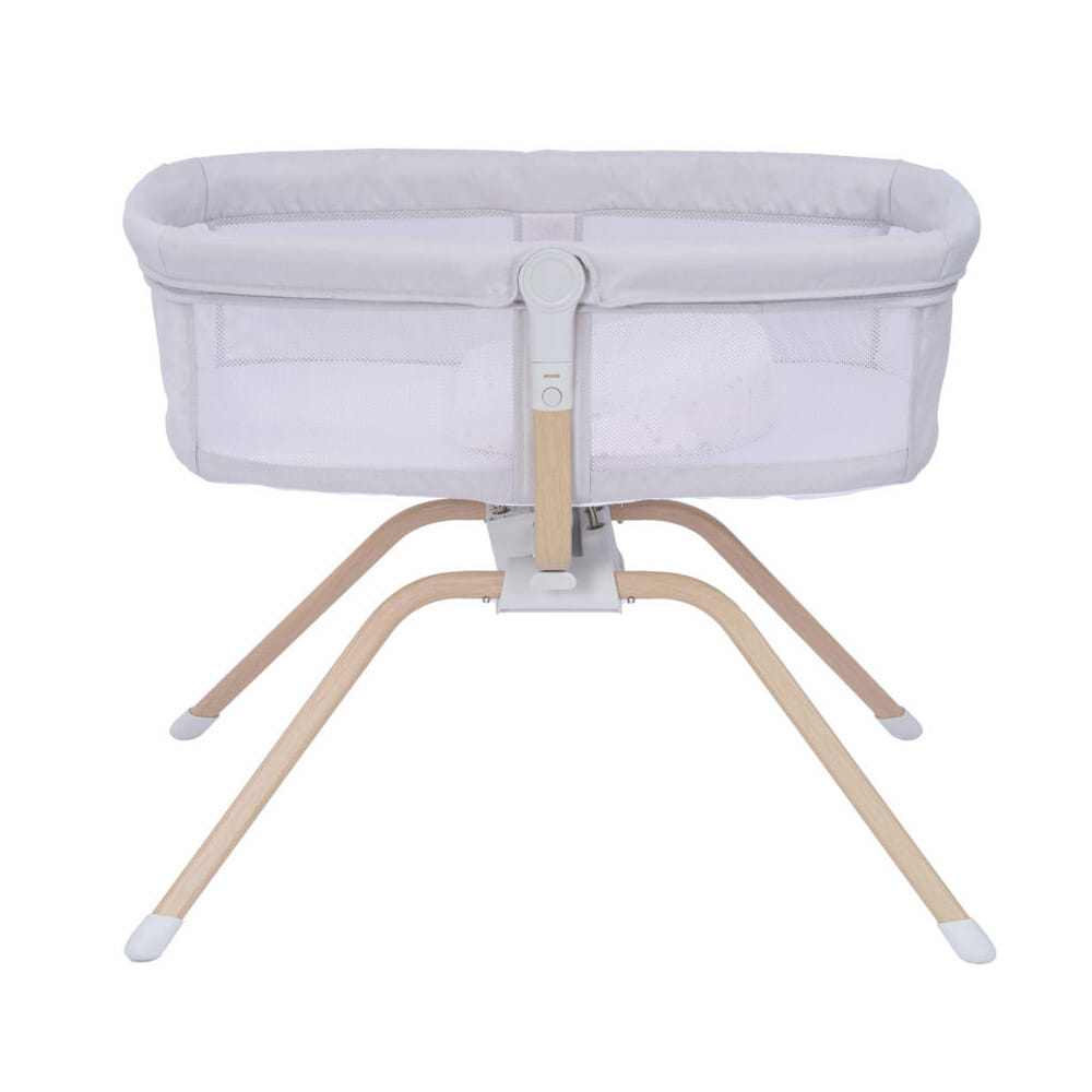 The gliding motion can be operated by a parent, but it can also start on its own when your baby stirs or rolls. This allows them to fall naturally back to sleep. It is designed to be intuitive to your baby’s movements, and as your baby stirs, the crib in turn will gently move to rock them back to sleep – rather like being in their parent’s arms. Its smooth, quiet movement is great for soothing your baby to sleep. There is no need for a parent to be continually rocking the crib, it does it by itself without the need for a powered motor which may wake your baby. The crib can also be locked so it doesn’t glide, a useful feature as your baby gets older and is ready for their transition to a cot or cot bed.