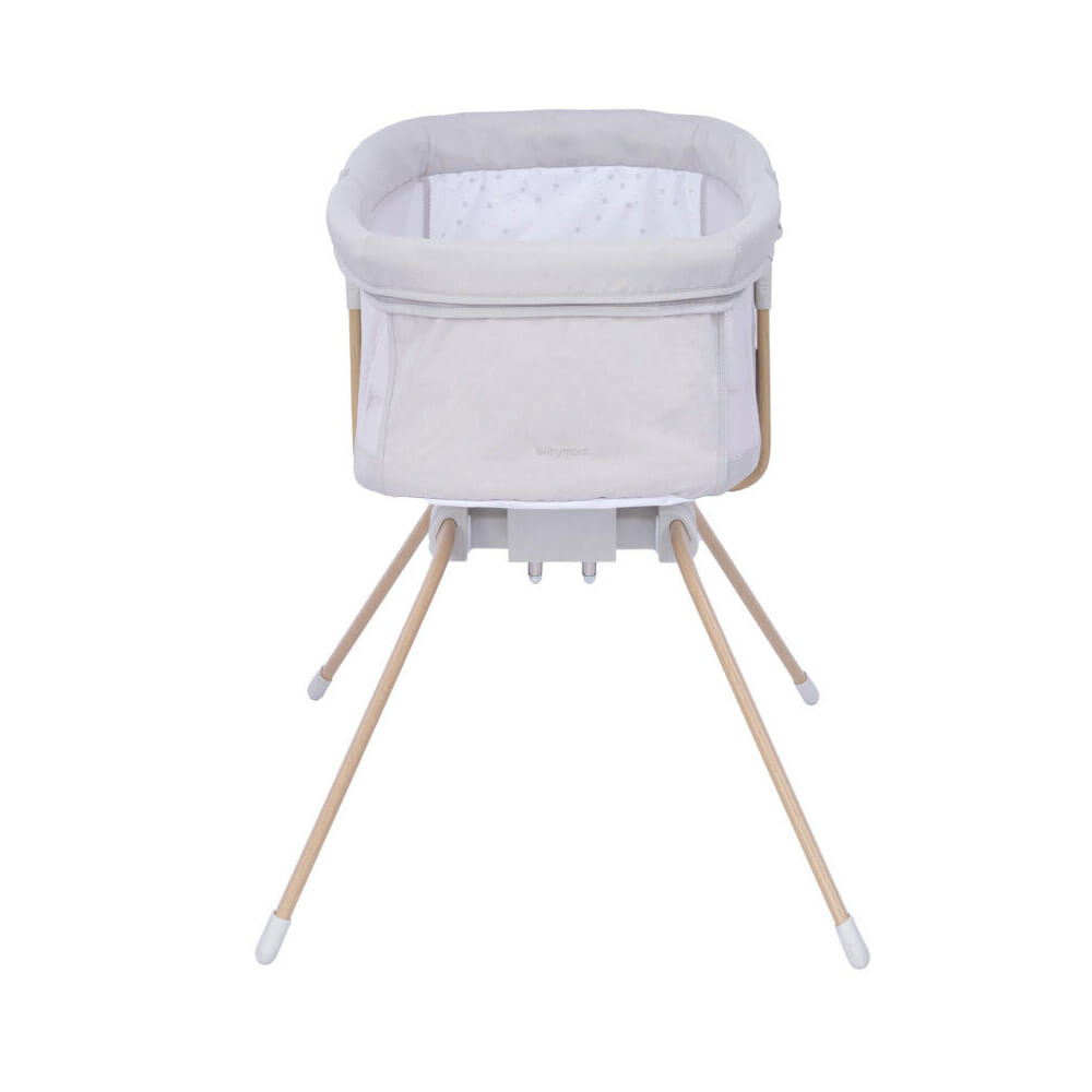 This stand-alone crib is suitable for overnight sleeping from birth up to 6 months or 9 kg.