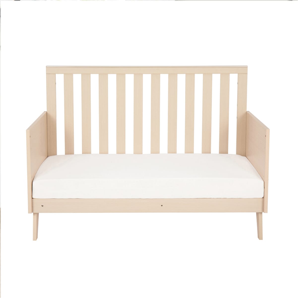 Add a touch of Scandi feel to your little’s one nursery with the Babymore Dante Mini cot bed. This beautifully crafted cot bed is designed to provide a safe and comfortable sleeping environment for your little one without compromising on style. With its clean, simple lines and sturdy construction, this cot bed is the perfect solution for parents looking for a long-lasting and practical bed for their growing child. Designed for those with smaller rooms, it’s suitable from birth until around 4 years of age. Your little one will start in the cot, which has three different mattress positions enabling you to easily lift baby in and out. The addition of teething rails on either side protects the wood from a teething toddler! Two toddler rails are included for added piece of mind once your little one has grown and is old enough to sleep without the full cot rails. Then, once they are ready, the Dante Mini easily converts into a stylish toddler bed.