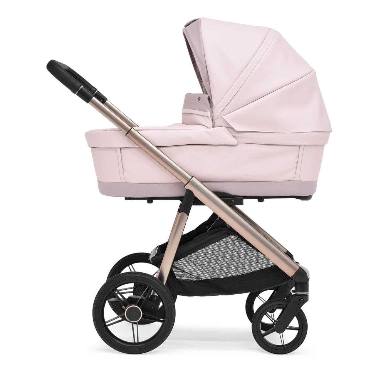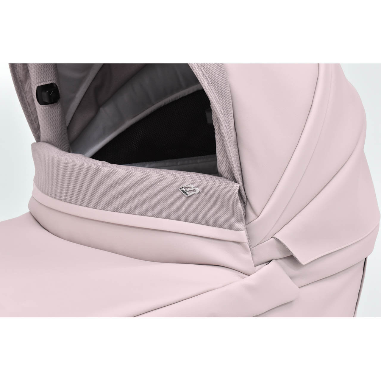 Mesh ventilation panels in carrycot base and hood for warm weather comfort
