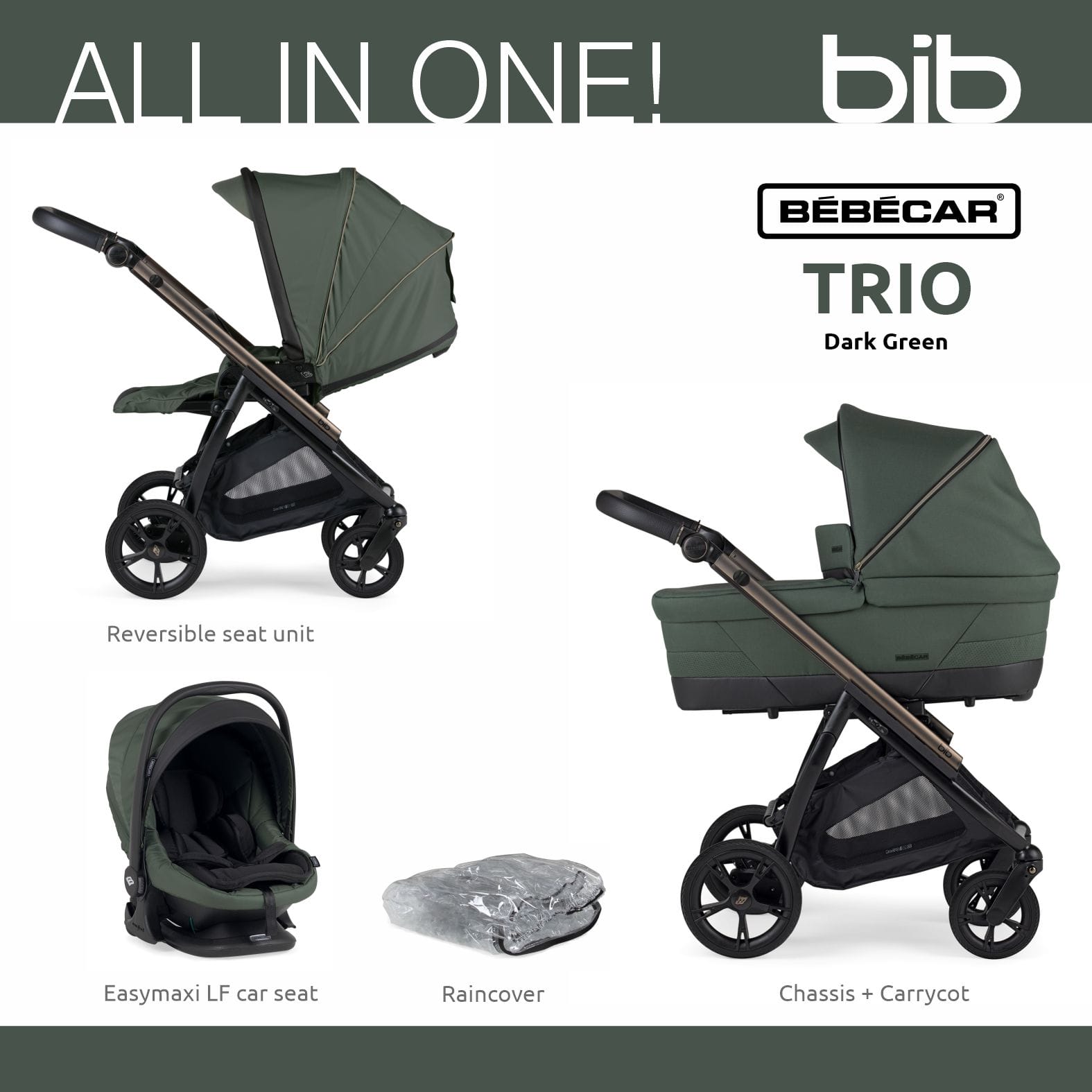 Includes Chassis with basket, Carrycot with hood + apron, seat unit with hood, Tencel mattress, raincover that fits both carrycot + seat unit, LF car seat.
