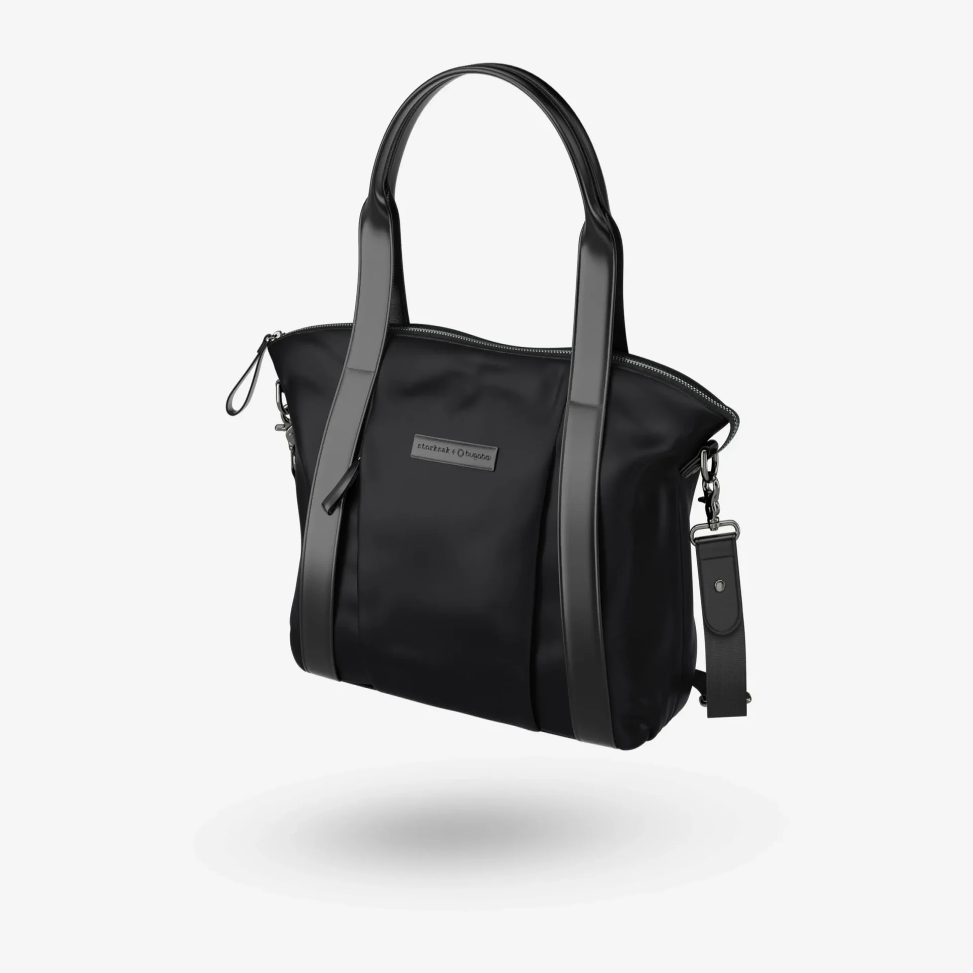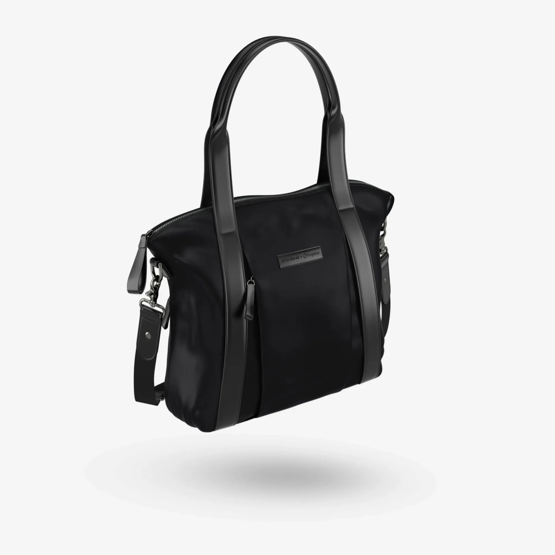 Inspired by a minimalist style and asymmetrical lines, the Storksak + Bugaboo Nylon Bag proves that design simplicity is the new sophisticated. This pushchair bag features black leather straps and brushed silver details, and was specially designed to store all your daily essentials. The sleek metal zip on top finishes the look. This baby bag also includes a matching changing mat and has a thermo-insulated zipped pocket. The Storksak + Bugaboo Nylon Bag is not just an accessory, but an all-in-one essential for parents looking for style and smart storage solution.