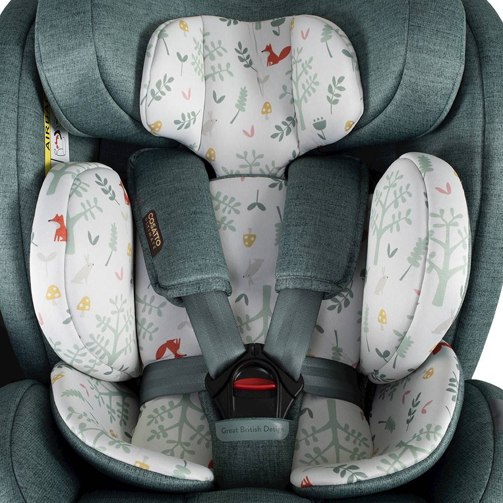 Cosatto All in All Extra i-Size 360 Car Seat Meadow is the 40cm-150cm all-stage Extended Rear Facing ISOFIX car seat with seamless 360-degree rotation. Extra side-impact protection and anti-rebound board.
