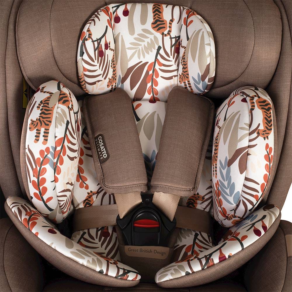 Cosatto All in All Extra i-Size 360 Car Seat Tiger Tale is the 40cm-150cm all-stage Extended Rear Facing ISOFIX car seat with seamless 360-degree rotation. Extra side-impact protection and anti-rebound board.