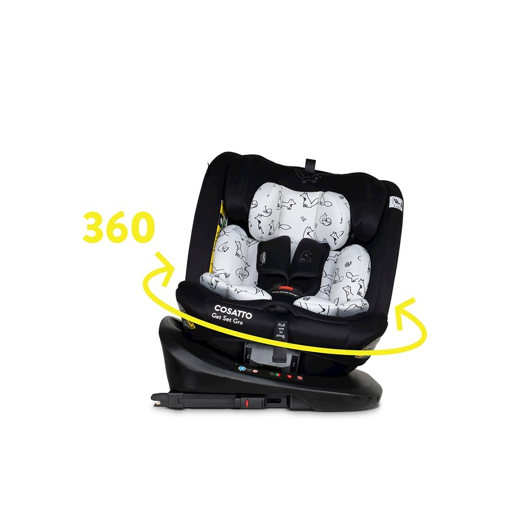 Cosatto Get Set Gro i-size 360 Foxed is an all-stage 360-degree rotating seat suitable from birth to 150 cm (approx. 12 years).