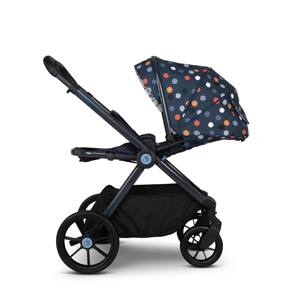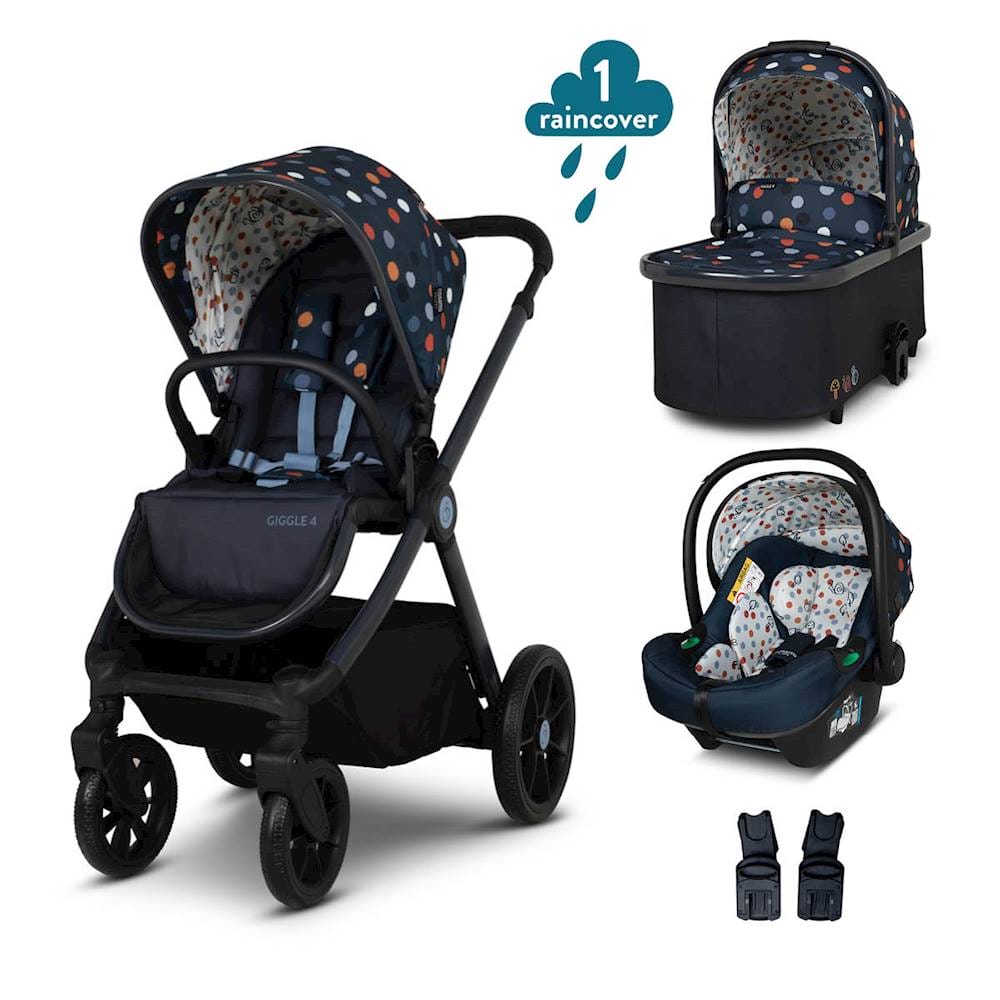 Cosatto Giggle 4 Car Seat Bundle Spot On is the complete package. The pram offers a lie-flat spacious carrycot, with deep padded mattress. Swap to reversible pushchair seat unit when they are ready. The chassis folds with the seat unit attached in either direction for easy getaways. This bundle also includes the Tote i-Size 0+ infant carrier and car seat adaptors. Giggle 4 is ‘Tiny Boot Approved’, making it ideal for storage and adapting on the go.