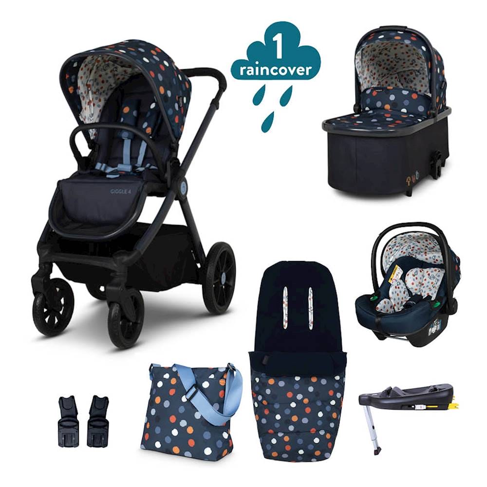 Cosatto Giggle 4 Everything Bundle Spot On is the complete package. The pram offers a lie-flat spacious carrycot, with deep padded mattress. Swap to reversible pushchair seat unit when they are ready. The chassis folds with the seat unit attached in either direction for easy get aways. This bundle also includes the Tote i-Size 0+ infant carrier and car seat adaptors, as well as the Giggle accessory bundle with footmuff and change bag. Giggle 4 is ‘Tiny Boot Approved’, making it ideal for storage and adapting on the go.