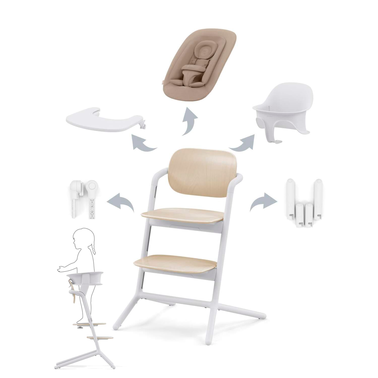 A timeless high chair furniture solution, the Lemo 5-in-1 set has everything you need to seat any family member from birth up to 99 years. Start with the bouncer nest after your baby is born. Once your child is able to sit, the included baby set provides support when needed. And as they get older even more possibilities await, with the Lemo Learning Tower Set helping curious kids explore their environment.