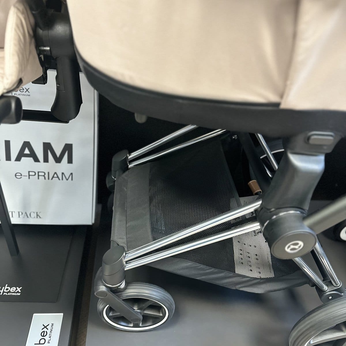 Cybex Platinum Priam Pushchair – Cozy Beige / Chrome Brown (Ex Display) | Carrycot & Seat Unit