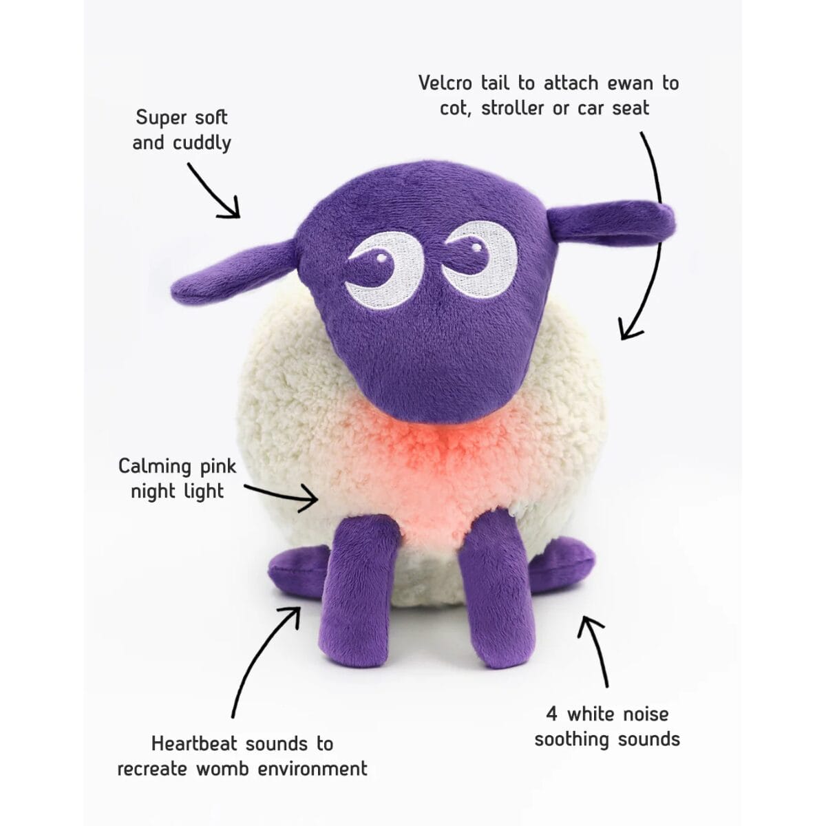 Sleep deprived parents will appreciate ewan the dream sheep just as much as their tired tot does! Designed to recreate the soothing sensation of the womb, ewan emits soft sounds at the low base frequency that babies hear in the womb, known as pink noise and combines this with a calming warm glow, to reassure your baby or toddler.