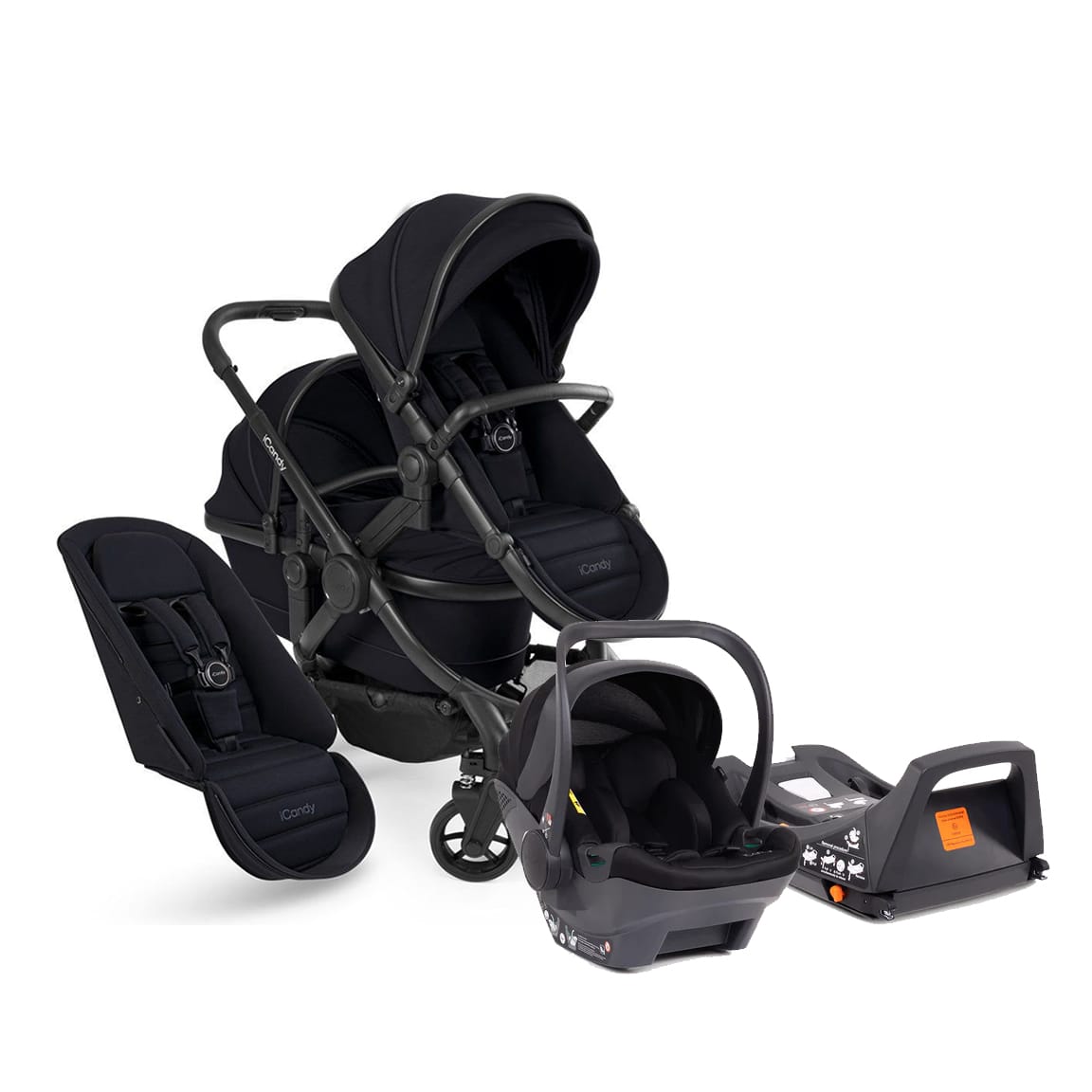 iCandy Peach 7 Double with Cocoon Car Seat & Base Jet/Black Edition