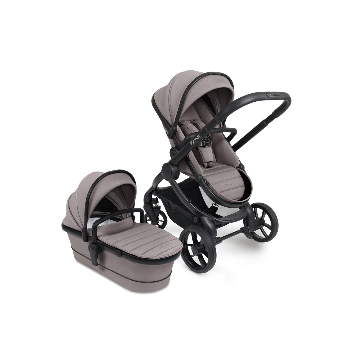 iCandy Peach 7 in Porcini blends style and practicality with soft taupe fabrics and a sleek Jet Black chassis. The spacious carrycot which is suitable for permanent overnight sleeping and integrated Ride-on Board suit growing families. Puncture-proof wheels, an ergonomic handlebar and premium jersey fabrics deliver all-day comfort, combining timeless design with everyday functionality.
