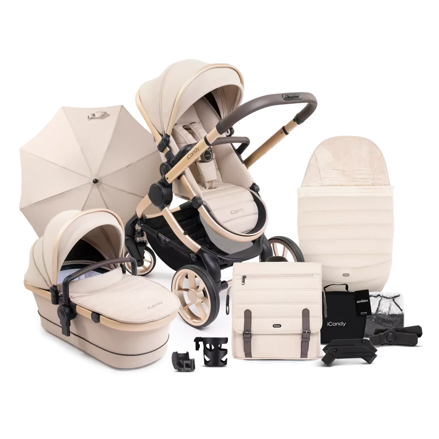 The ultimate pushchair for first time parents, the iCandy Peach 7 Complete Bundle Pecan is beautifully engineered, suitable from birth due to the spacious carrycot which can also be used for permanent overnight sleeping. With its soft, modern premium knitted jersey fabrics guarantee comfort for baby and style for parents.
