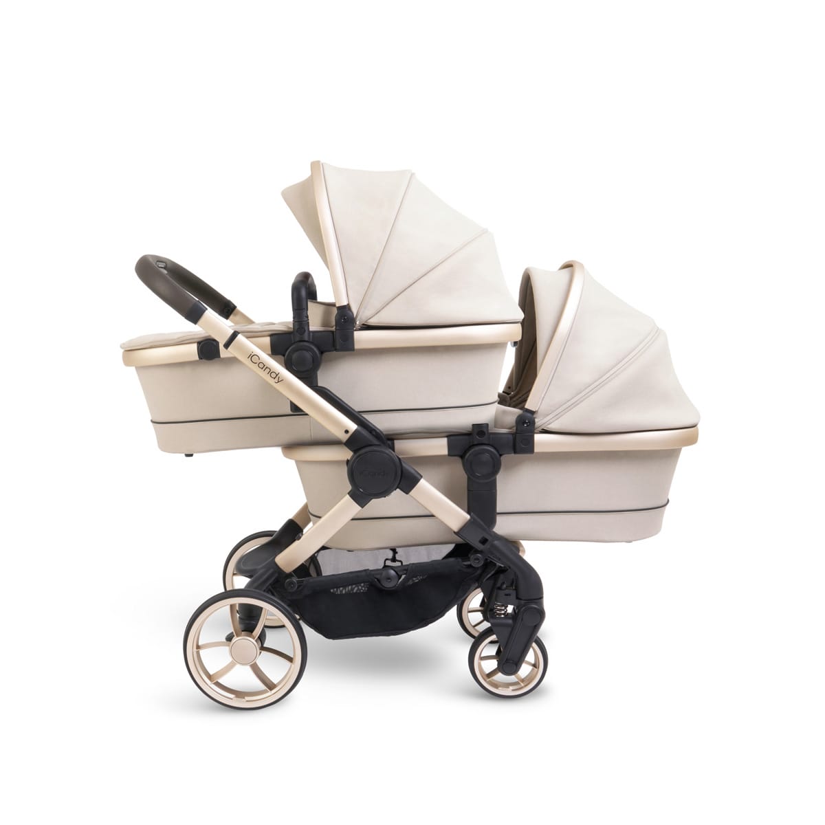 The ultimate pushchair for first time parents, the iCandy Peach 7 Twin Biscotti is beautifully engineered, suitable from birth due to the spacious carrycot which can also be used for permanent overnight sleeping. With its soft, modern premium knitted jersey fabrics guarantee comfort for baby and style for parents.