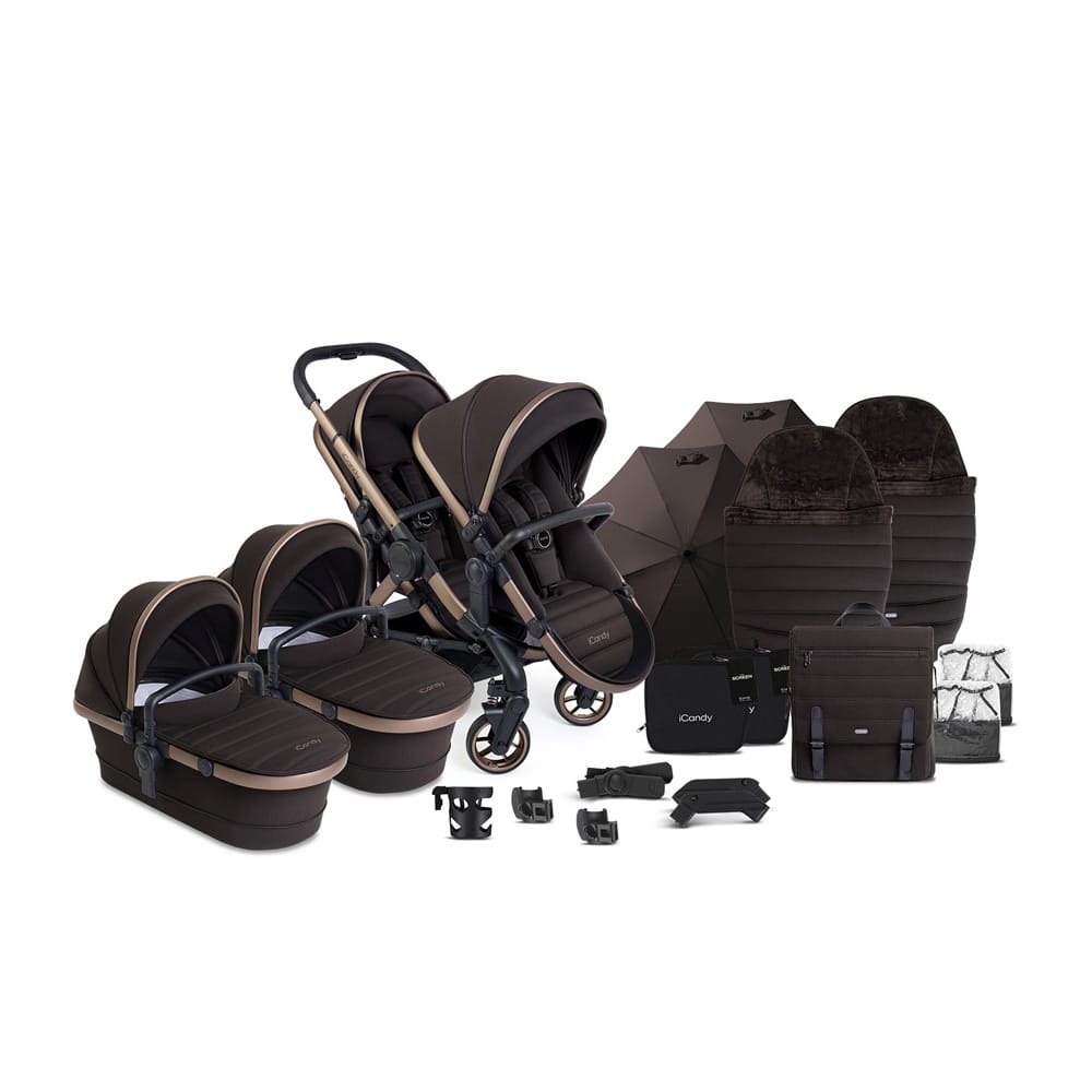 The ultimate pushchair for first time parents, the iCandy Peach 7 Twin Complete Bundle Pecan is beautifully engineered, suitable from birth due to the spacious carrycot which can also be used for permanent overnight sleeping. With its soft, modern premium knitted jersey fabrics guarantee comfort for baby and style for parents.