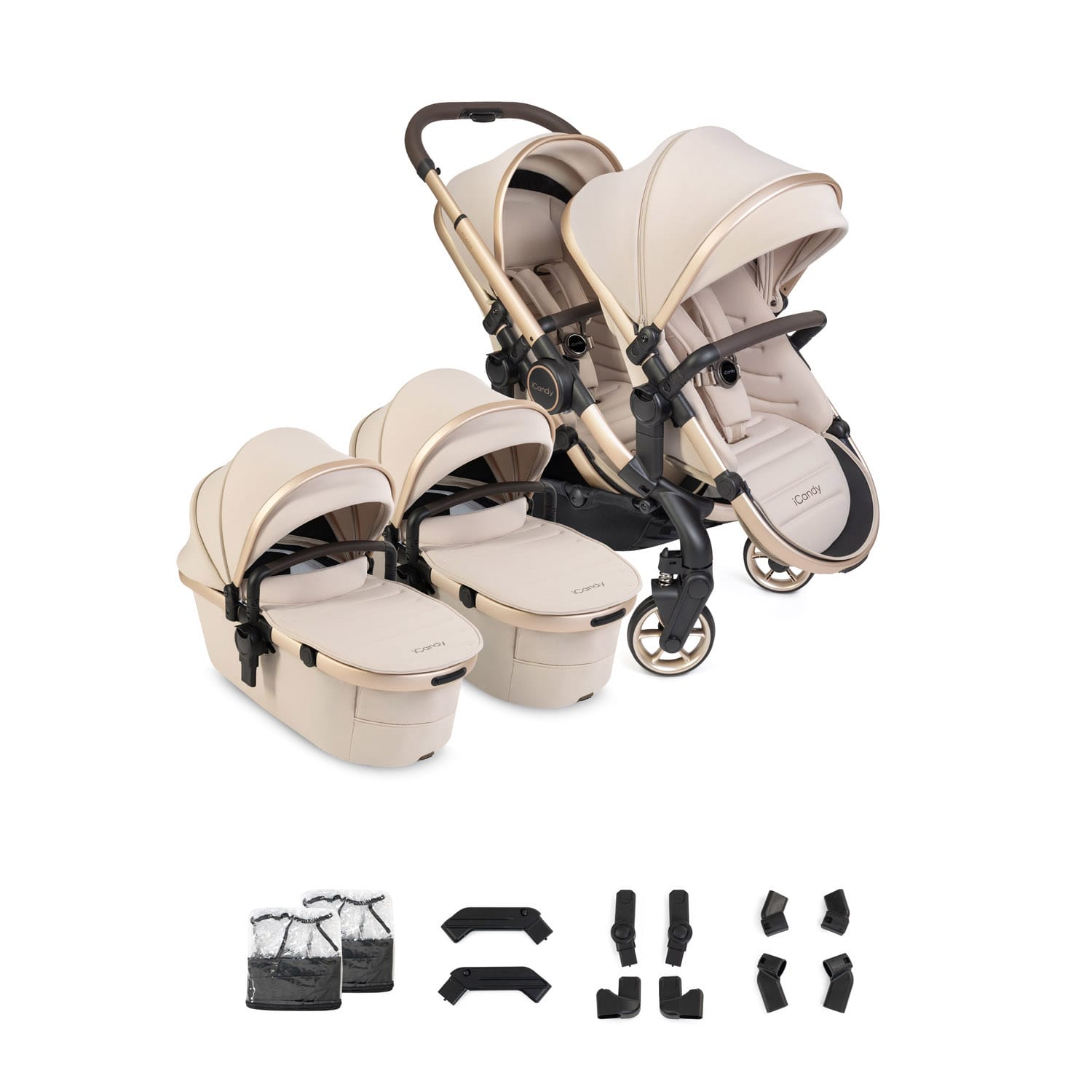 The iCandy Peach 8 Twin Combo is a beautifully engineered, luxury all-in-one pushchair designed to support families with two newborns or infants of similar age. Seamlessly combining iCandy’s latest pushchair innovation with intelligent functionality, it delivers exceptional comfort, performance and style from day one.