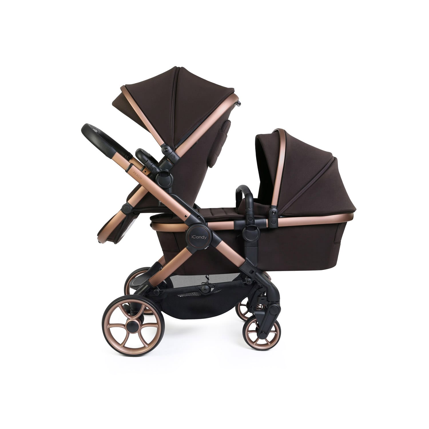 The iCandy Peach 8 Double Complete Bundle is a beautifully engineered, luxury all-in-one pushchair solution designed to support growing families with both a newborn and toddler. Seamlessly combining iCandy’s latest pushchair innovation with intelligent functionality, it delivers exceptional comfort, performance and style for everyday family life.