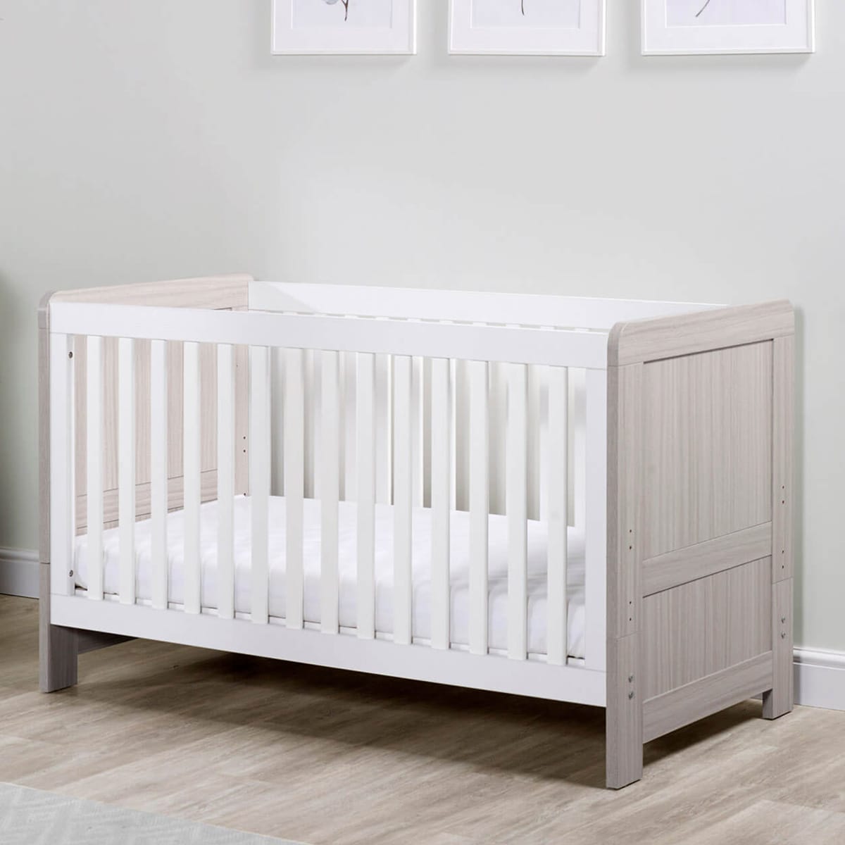 Ickle Bubba Pembrey Cot Bed offers you a choice of 3 different colour options, with a full textured oak design or alternatives that include contemporary and classic white detailing. Its clean lines and robust design create a modern and distinct style for your baby’s nursery.