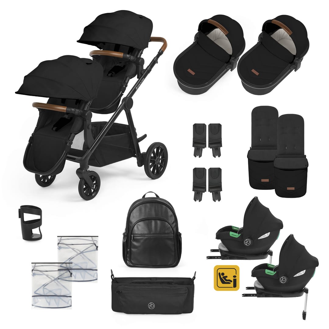 Ickle Bubba Virgo Twin 18 Piece Travel System with i-Size Cirrus Car Seats and Isofix Bases – Black-Black-Tan
