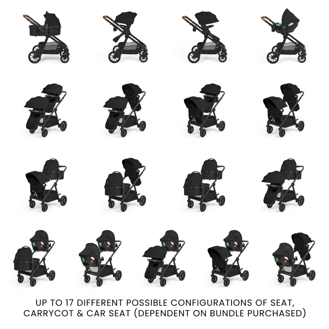 Up to 17 different possible configurations of seat, carrycot and car seat (dependent on bundle purchased)