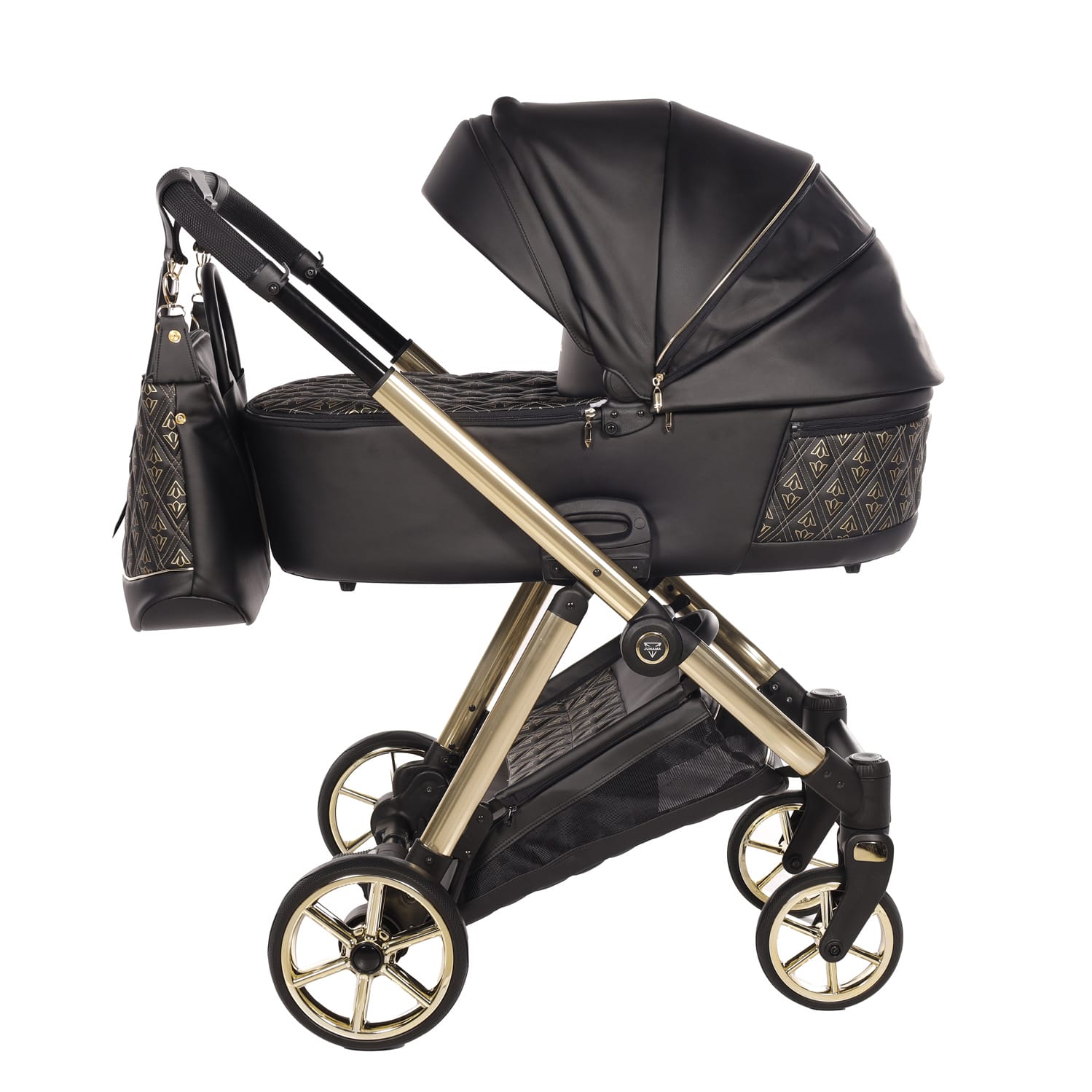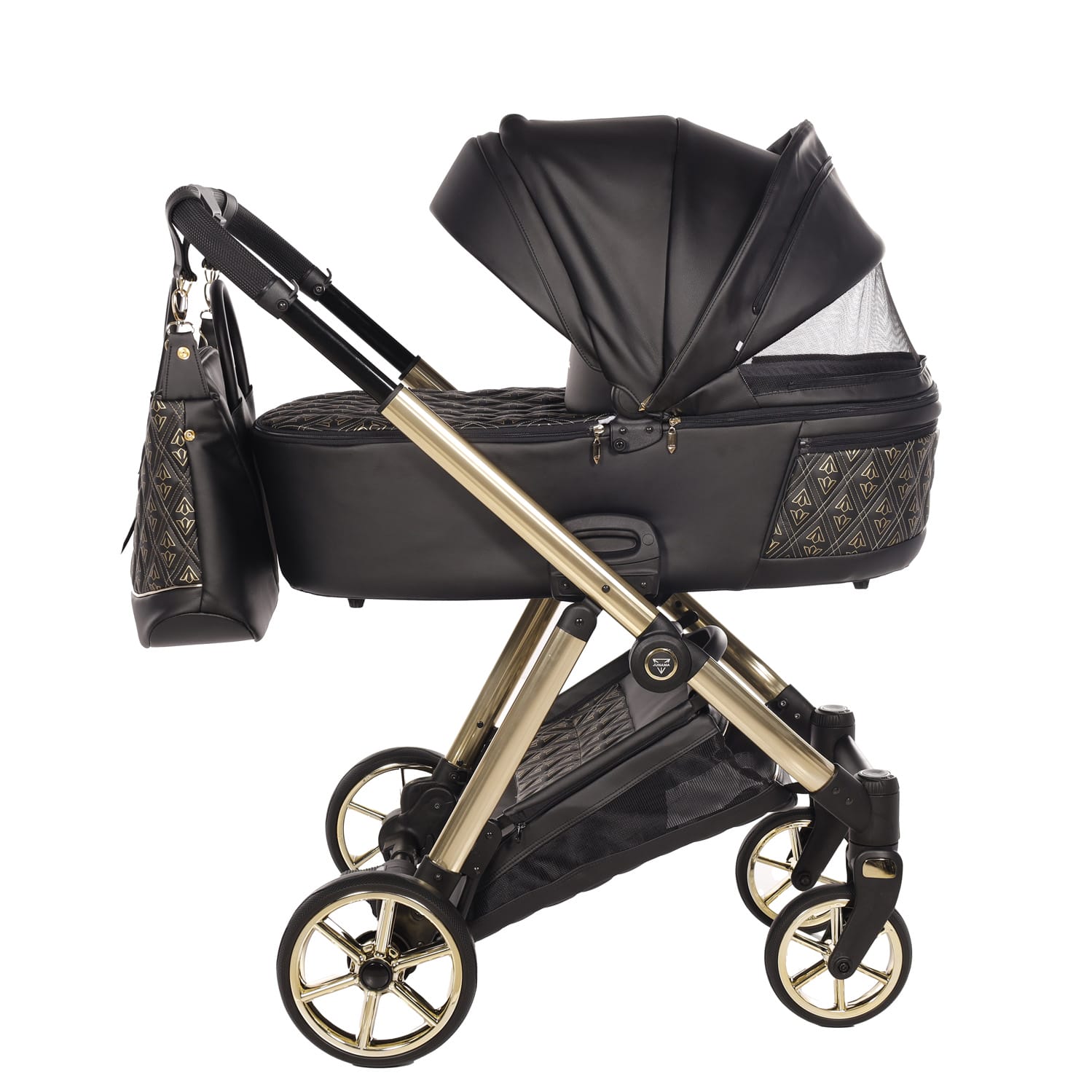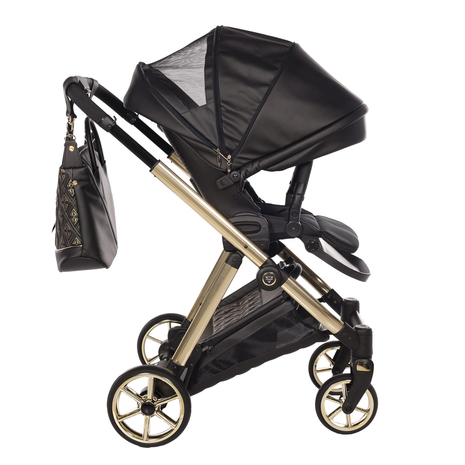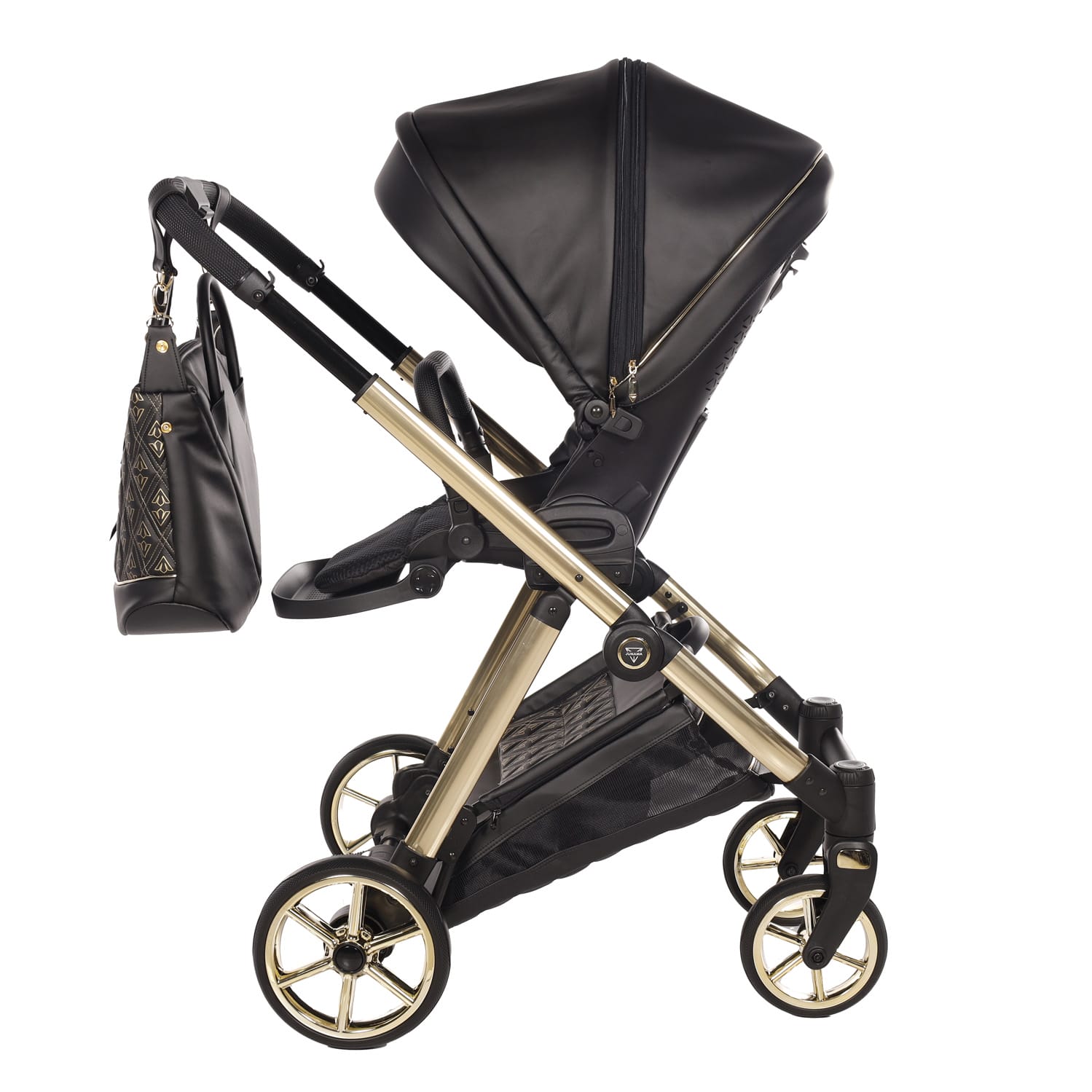 The aluminium chassis comes with superb suspension, large shopping basket and quick release wheels. Engineered with shock breakers which make the pram extra comfortable and smooth. The reliable front suspension release system absorbs shocks from the ground and frontal blows, for example when hitting the curb. The chassis is engineered with a separate adjustable shock absorber, ensuring agile steering on all terrains.