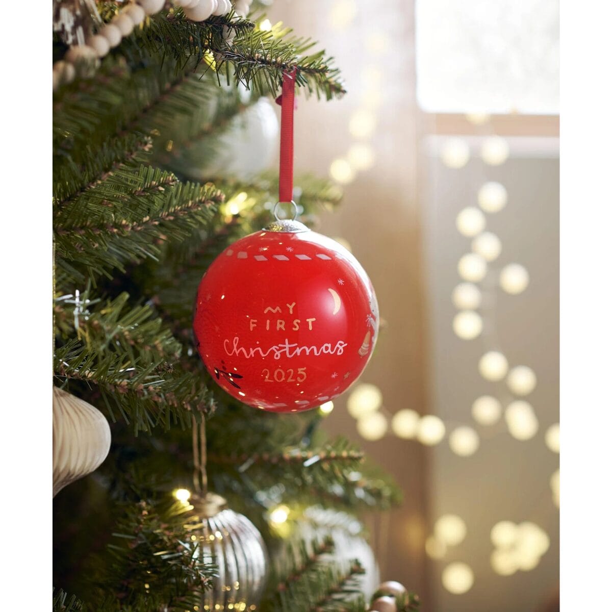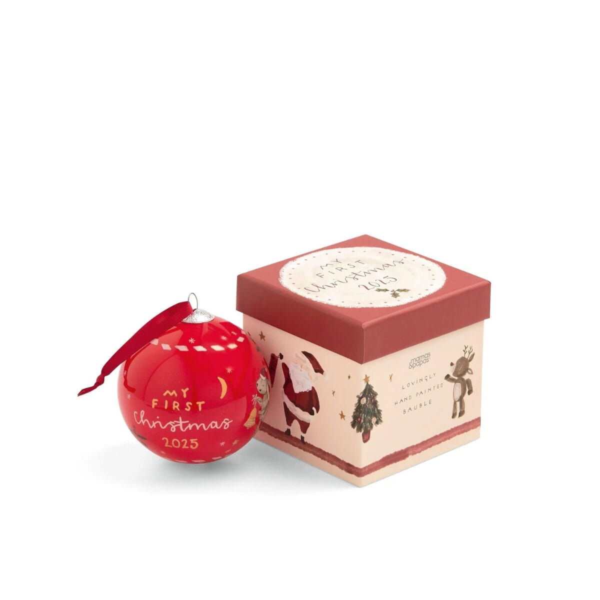 Celebrate your special family milestone with our lovingly hand-painted ‘My First Christmas’ glass bauble. A heartfelt addition to your décor, it features the year alongside our beloved festive friends – Santa, Boo Bear, Beau Bunny, and Dash Reindeer. Beautifully presented in a matching box for safekeeping, it’s a joy to both display and treasure.