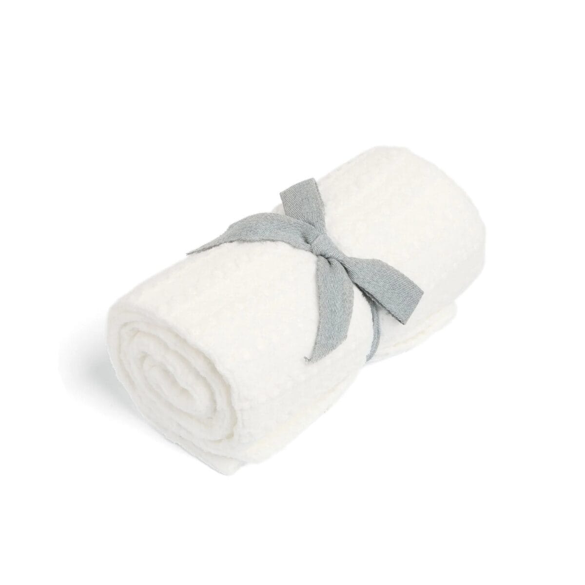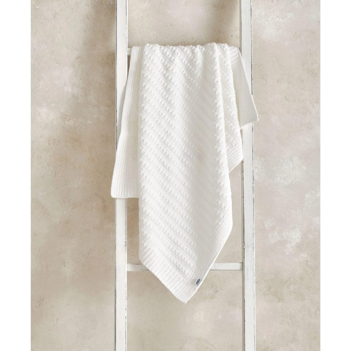 Super-soft and cosy white chenille blanket featuring perfectly woven stripe knit detail. Machine washable.