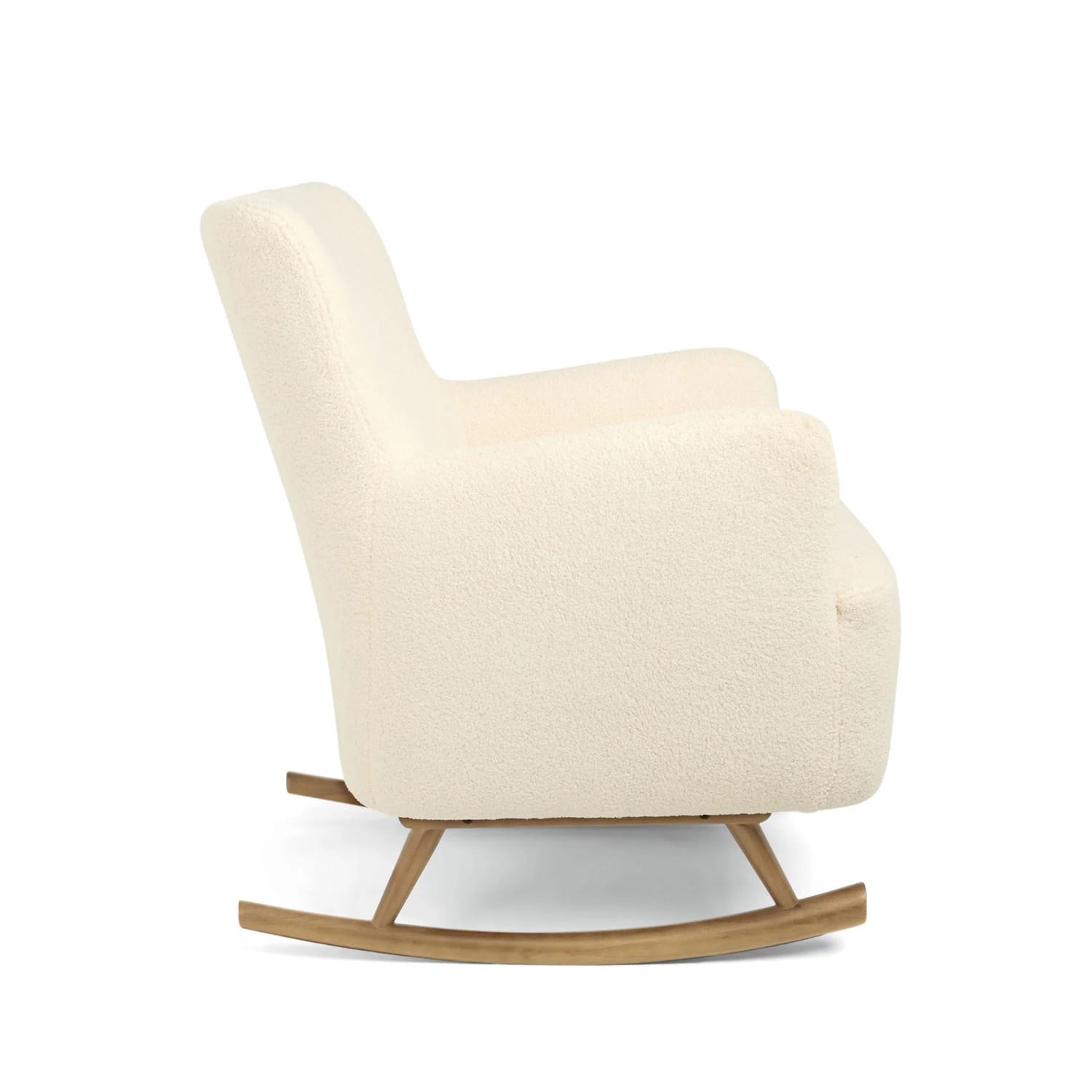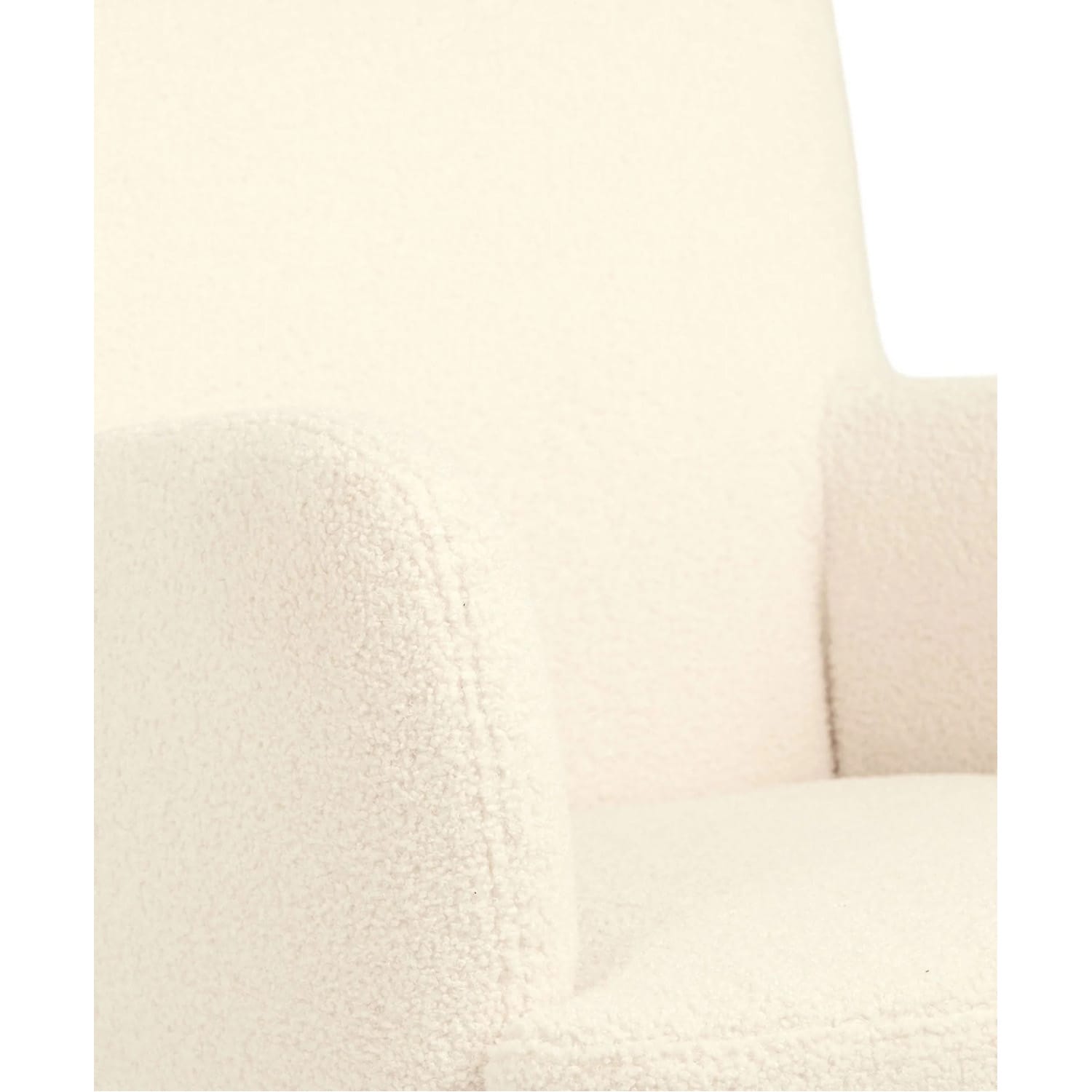 - Fully upholstered boucle nursing chair in irresistibly soft, textured fabric to complement modern nurseries
