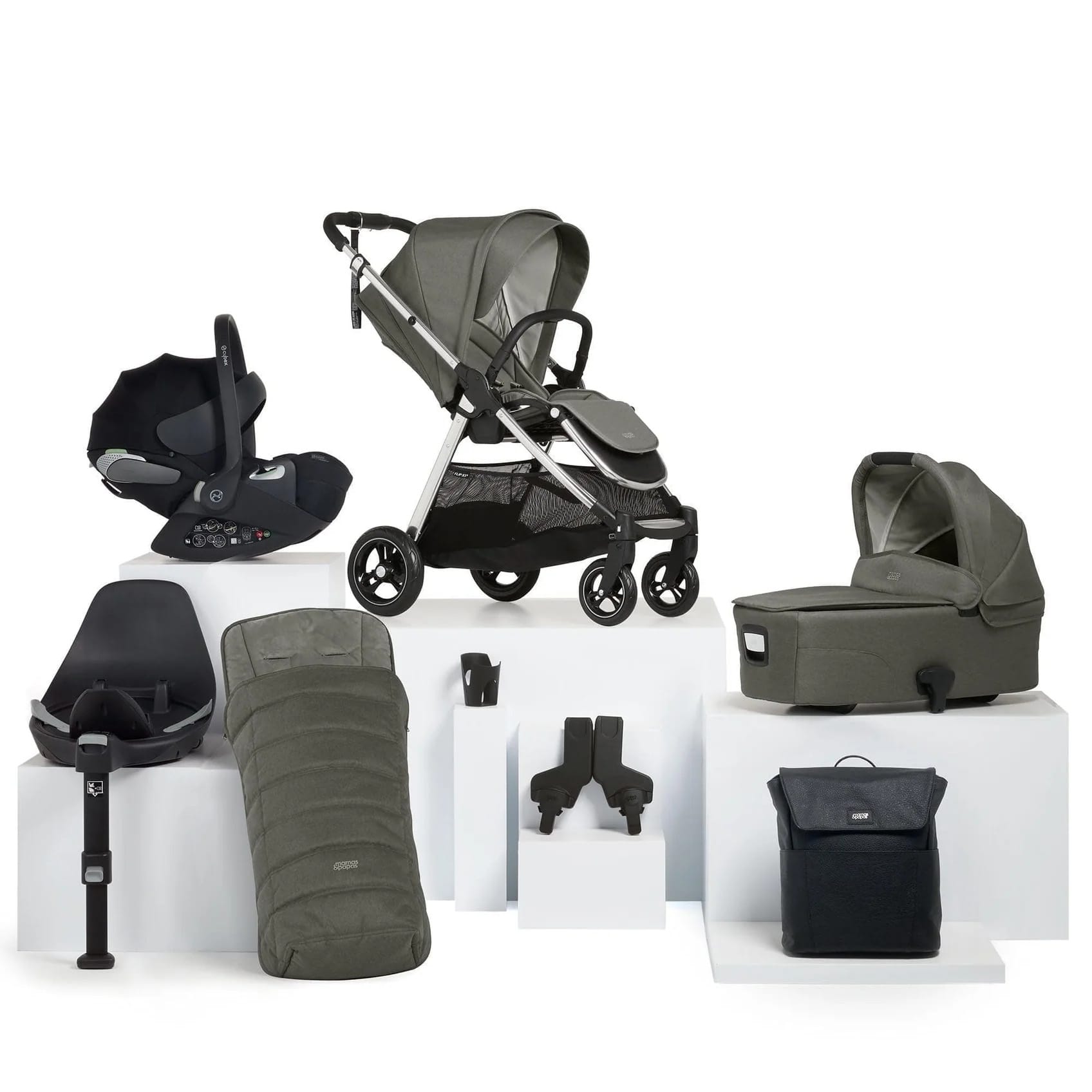 This Bundle includes: Flip XT³ Pushchair, Flip XT³ Pushchair Carrycot, Car Seat Adaptors, Cybex Cloud T Sepia Car Seat – Black, Cybex Cloud T Base, Universal Cup Holder, Flip XT³ Pushchair Footmuff & Adjustable Changing Backpack.