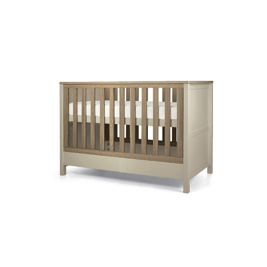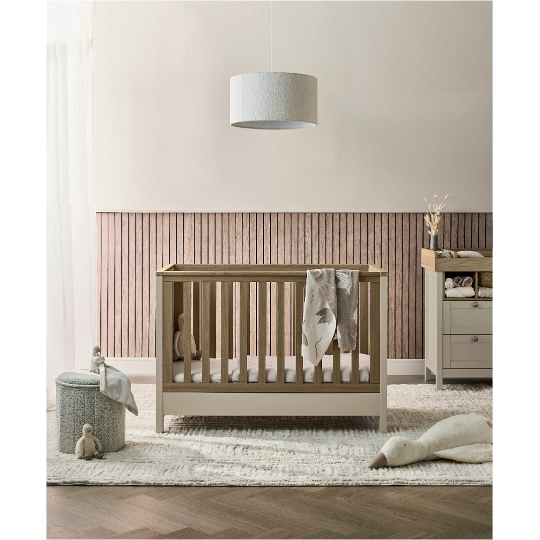 Meet our Harwell convertible cot range, a beautifully elegant, three-piece nursery furniture set designed to make the most of smaller spaces without compromising on style or comfort. The convertible cot is thoughtfully crafted to fit snugly into more modest nursery layouts while offering your little one a comfortable and spacious sleep environment. As your child develops, the convertible cot easily transforms into a toddler bed, keeping them sleeping soundly up to four years of age. Paired with the Harwell wardrobe and dresser, this elegant collection brings a cohesive, modern look to any nursery. And because these pieces feature plenty of adjustable elements and storage, the range can grow and change as your baby does.