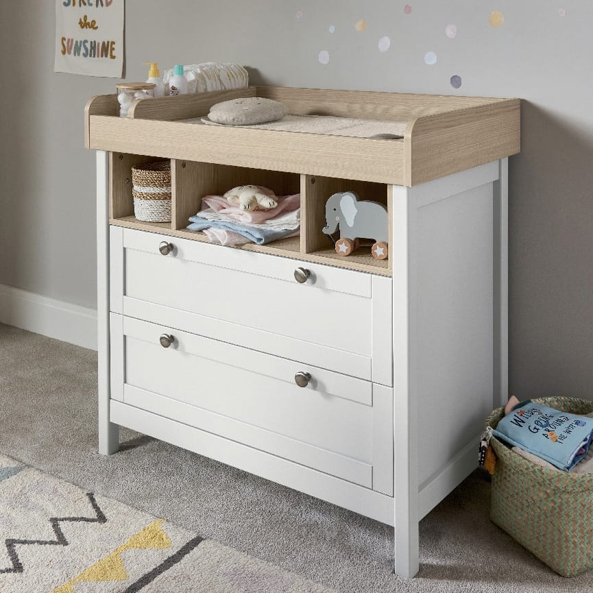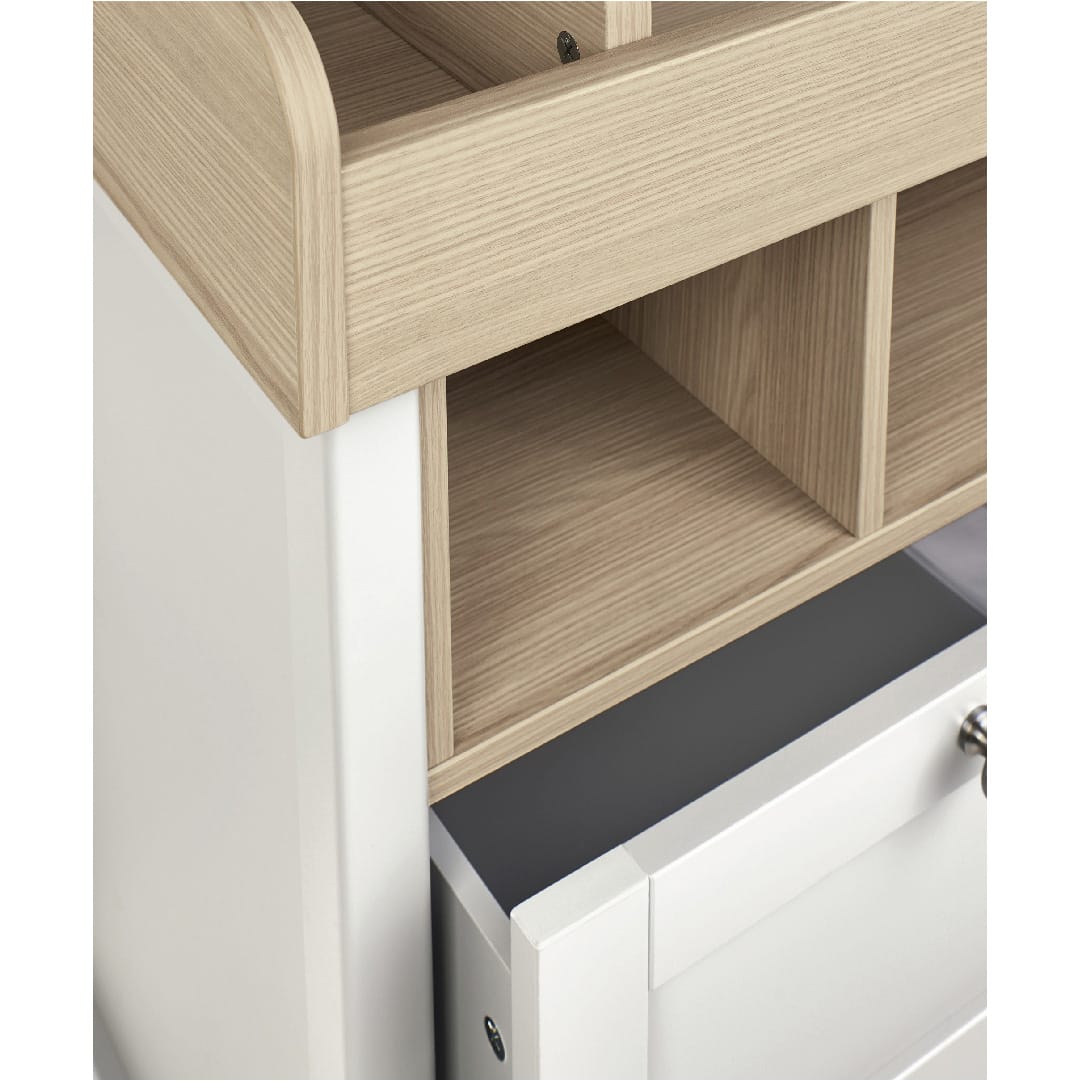 Introducing the ultimate nursery dresser changer that effortlessly simplifies the task of changing and dressing your little bundle of joy. With its clever design, this Harwell nursery dresser changer offers convenience and versatility that adapts to your child’s growth. Featuring a removable top, this dresser changer ensures that as your little one grows, their changing needs can be easily accommodated. The abundance of soft close drawers nursery storage space guarantees ample room for all your child’s cherished toys and clean outfits. Say goodbye to clutter and embrace a well-organized nursery where everything finds its perfect place.