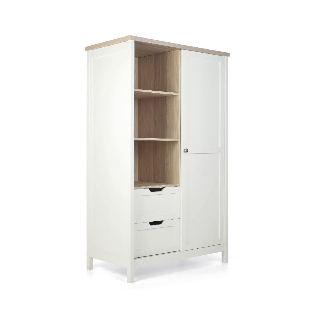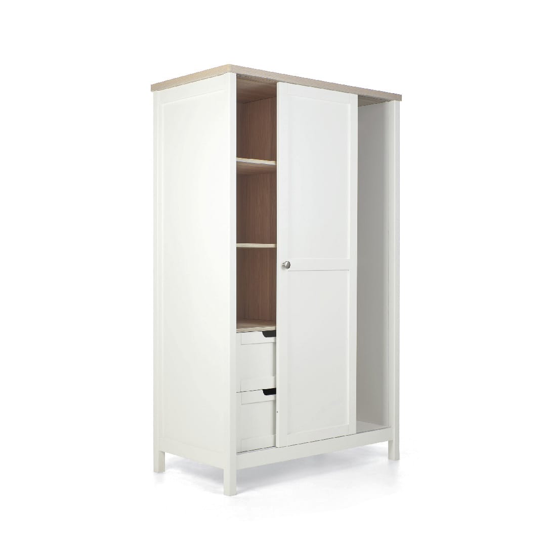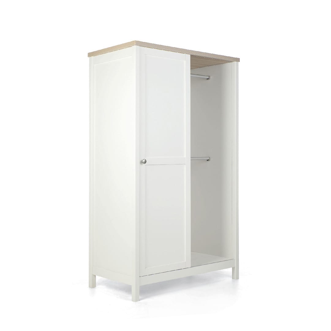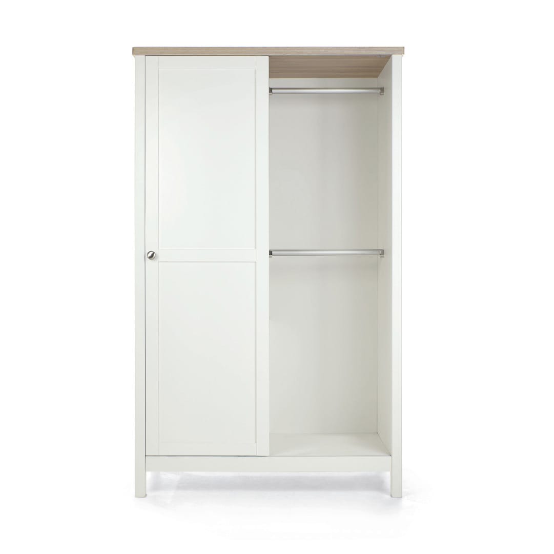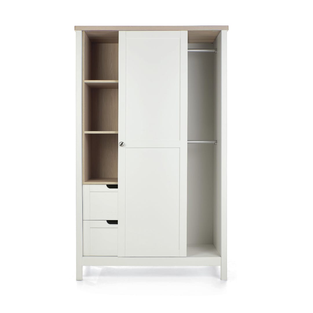 Keep your little one’s nursery neat and tidy with our Harwell wardrobe. It’s got a clean finish and pine accents, perfect for pairing with the rest of our range. With an easy sliding door, 2 removable rails for hanging clothes and 3 removable shelves, you can store everything from baby’s favourite books and toys to clean outfits and bedding. The drawers are also soft-close, meaning you won’t disturb baby at naptime.
