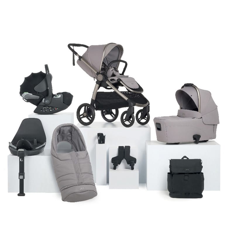 This bundle includes Pushchair, Carrycot, Adaptors, Cupholder, Bag, Footmuff, Cloud T Car Seat & Base