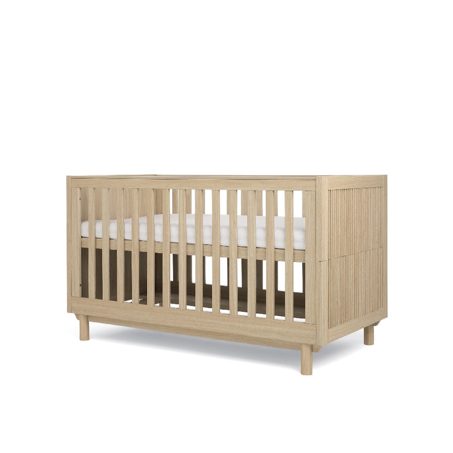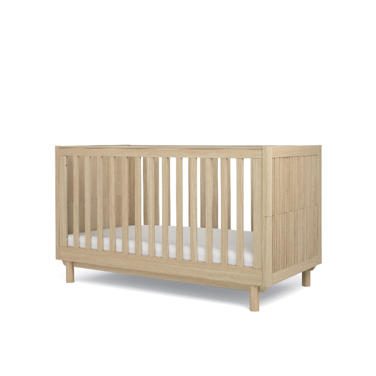 Inspired by the minimalistic beauty of Scandinavian and Japanese design, the Oska cotbed brings effortless style to modern nurseries. Made to grow with your little one, from newborn to toddler, it features multiple base heights and easily converts into a toddler bed when they’re ready. Its warm oak tones, slatted detailing, and natural textures create a calming and contemporary look.