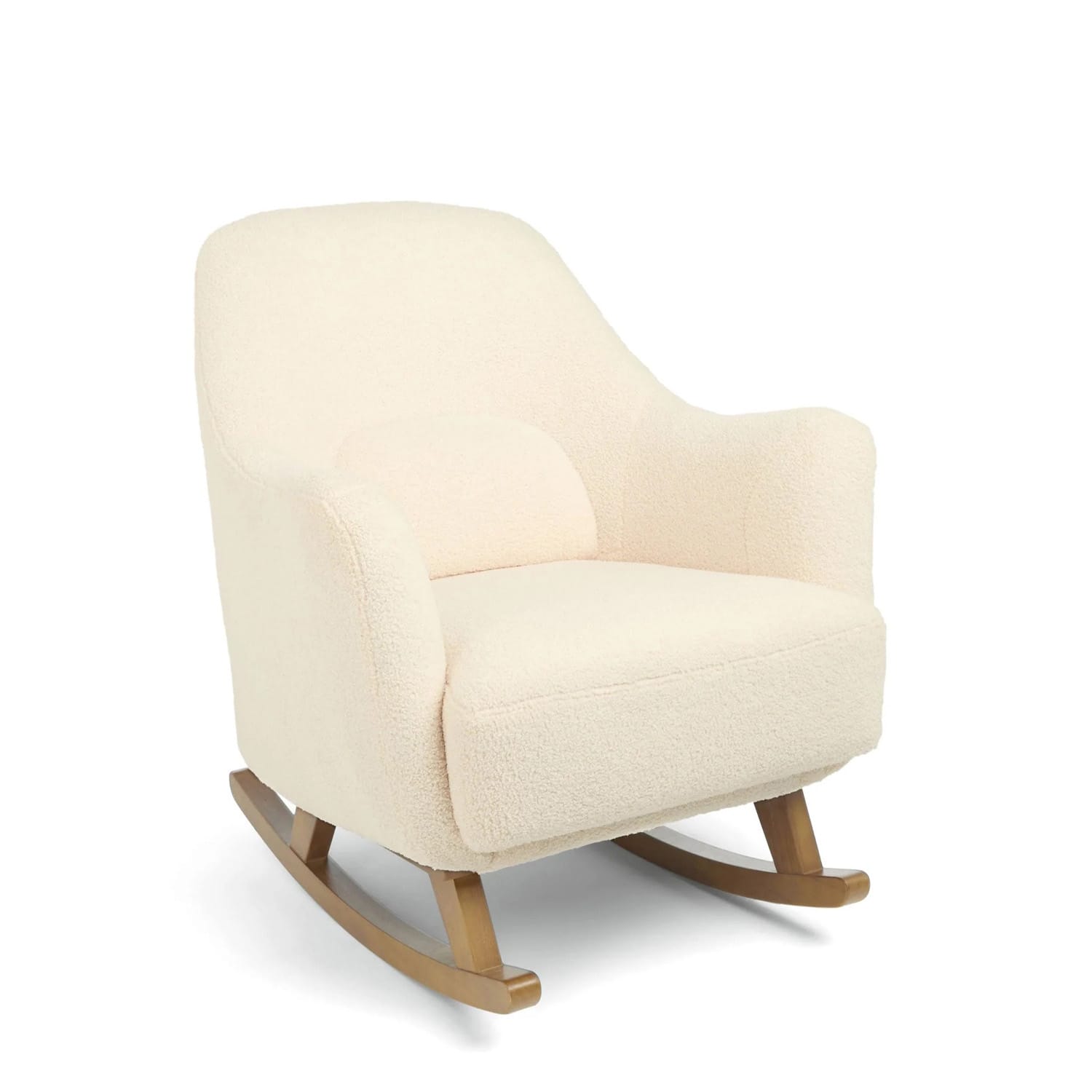 - Fully upholstered boucle nursing chair in irresistibly soft, textured fabric to complement modern nurseries