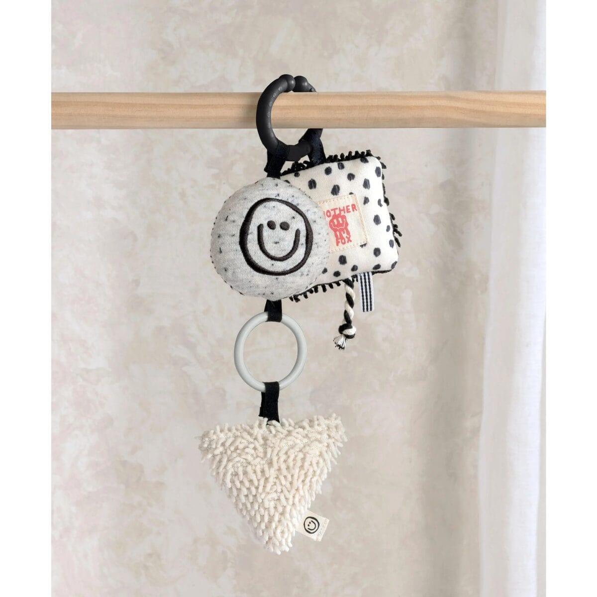 Designed with baby’s essential early development in mind, this playful linkie features high-contrast black and white patterns to help stimulate visual focus from day one. Part of our exclusive collaboration with Another Fox, its punchy prints and sensory surprises are perfect for keeping little ones wildly entertained on the go. Simply clip it to their pushchair or carrycot, and watch as they grab, grasp, and explore exciting textures and sounds. Plus, with a handy C-ring teether, it’s a soothing teething toy too.