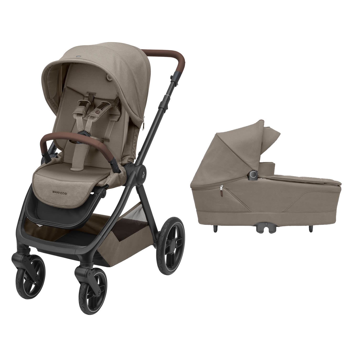 The Maxi-Cosi Oxford+ – Twillic Truffle features the spacious and compact folding Oxford pushchair as well as the luxuriously comfortable Sense carrycot. No matter where your adventures take you, your newborn can sleep gently through every outing thanks to the Sense carrycot’s spacious design and breathable memory foam mattress. Oxford+ allows you to attach not only a carrycot but also your Maxi-Cosi car seat as part of a comprehensive 3-in-1 travel system.