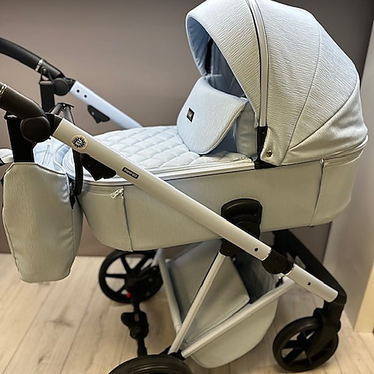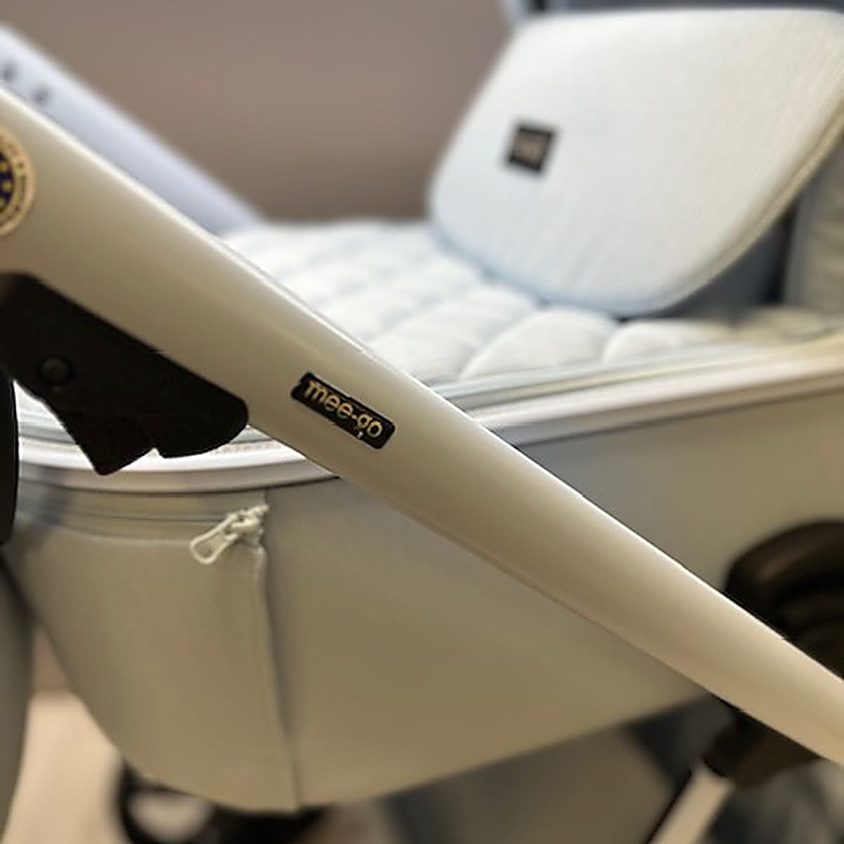 The Mee-Go Natura in Sky is a beautifully designed pram that combines modern style with everyday practicality. This ex-display model has been on display in our showroom and may show very minor cosmetic marks from handling, but it has never been used outdoors.