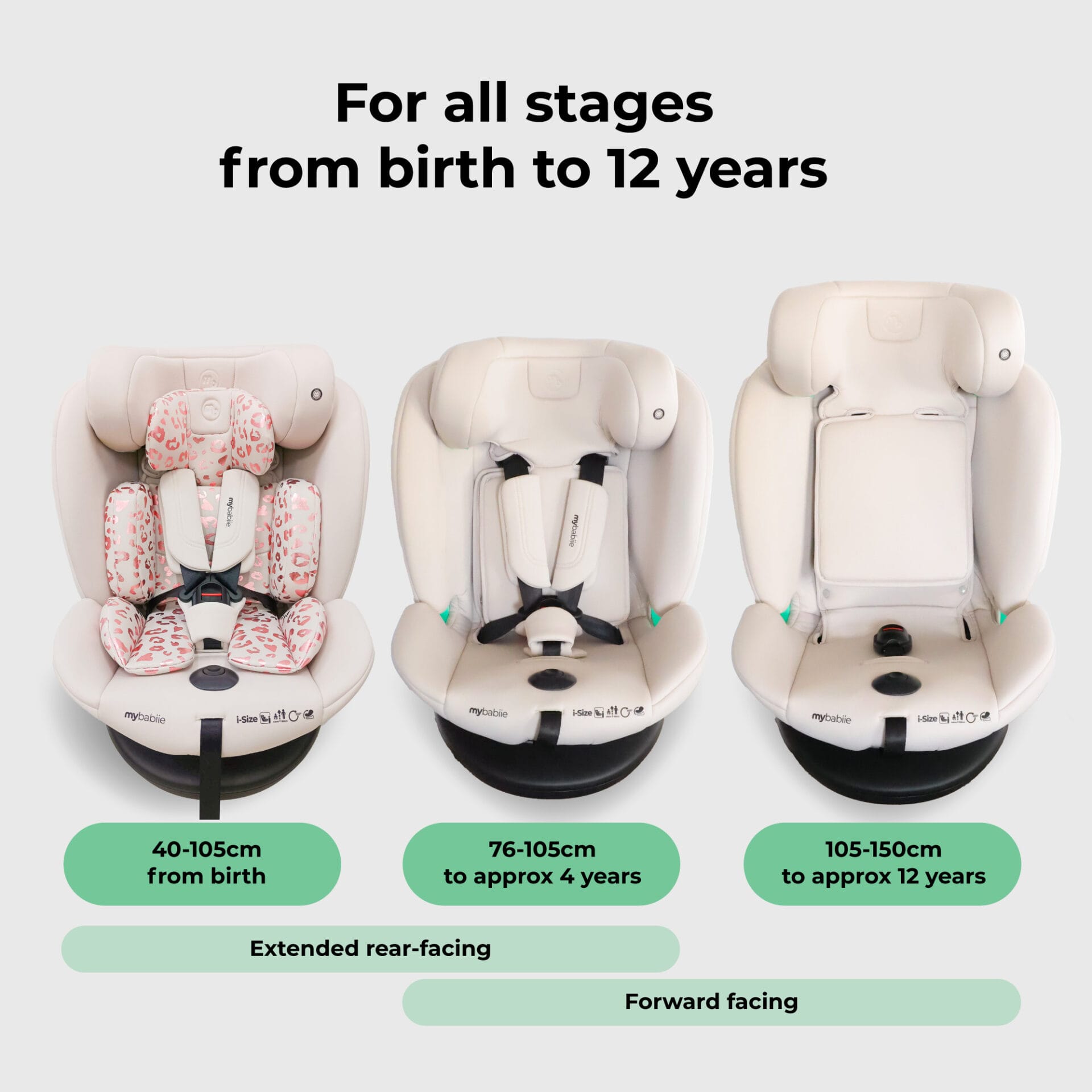 My Babiie MBCS300 i-Size (40-150cm) Spin Car Seat – Blush Leopard