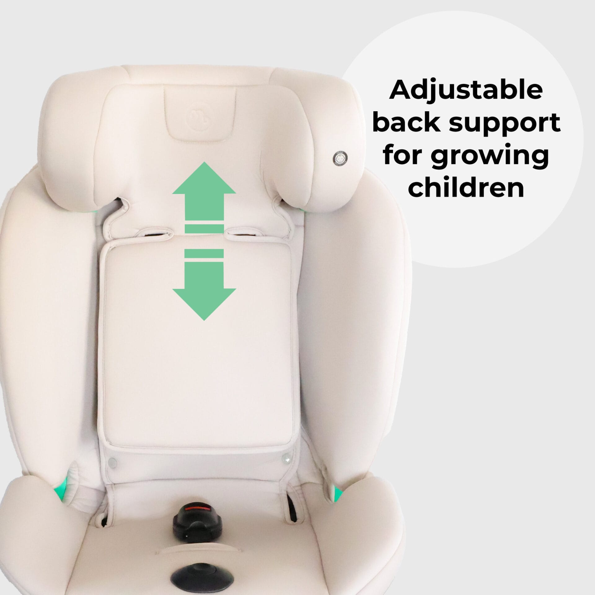 The My Babiie MBCS300 Spin Car Seat is designed to grow with your child from birth up to 12 years old, covering Groups 0+, 1, 2, and 3. With four recline positions and removable inserts, including baby wedges, it ensures your little one always sits in an ergonomic position that supports healthy spine development. Whether it’s a newborn or a growing child, comfort is a priority. The 5-point harness automatically adjusts with the headrest, keeping your child secure and correctly positioned at all times.