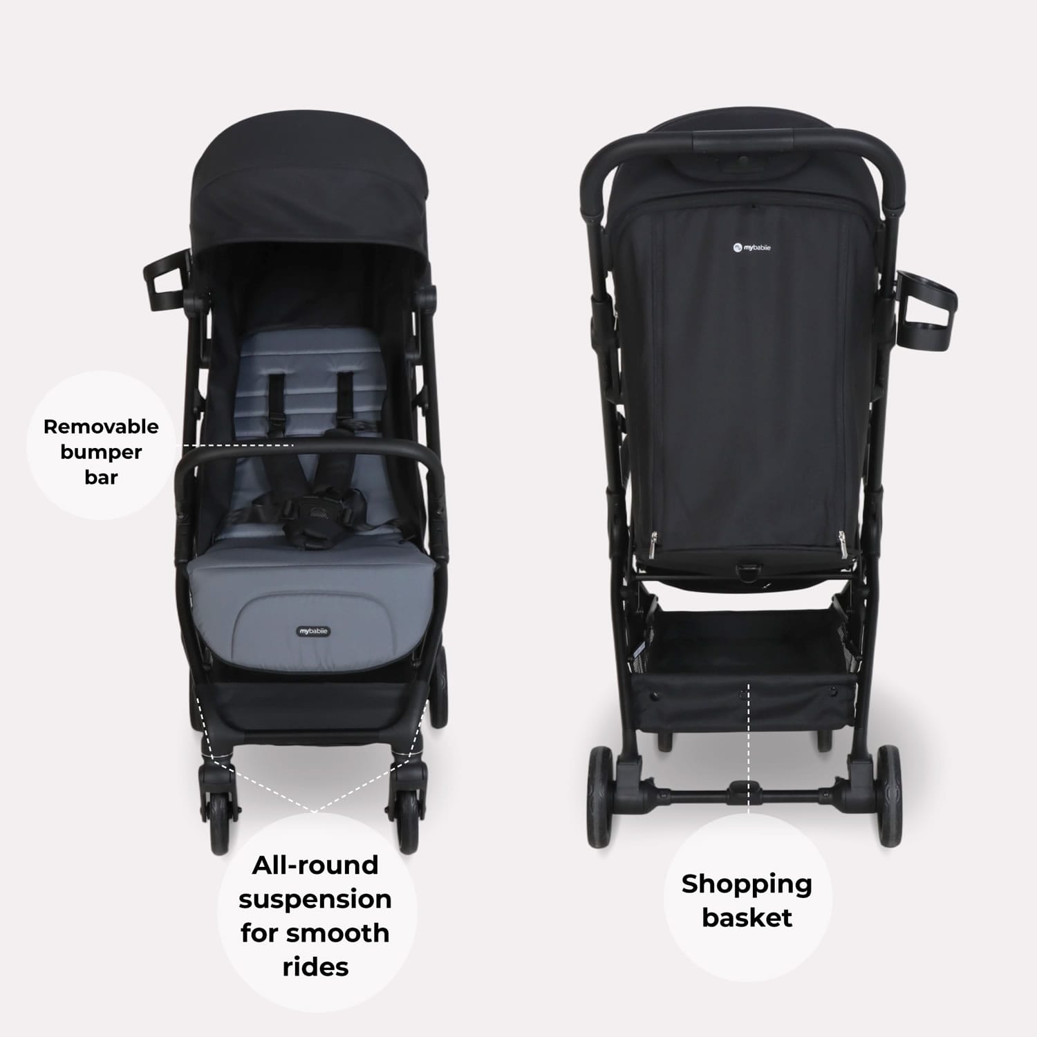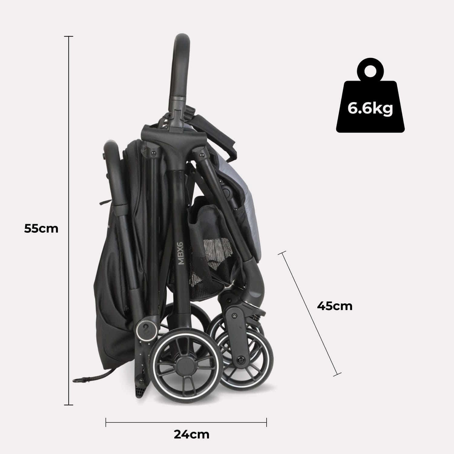 My Babiie MBX6 Auto-Fold Compact Stroller – Black/Grey