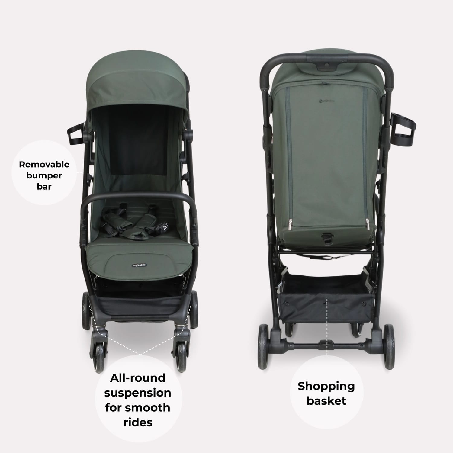 My Babiie MBX6 Auto-Fold Compact Stroller – Forest Green