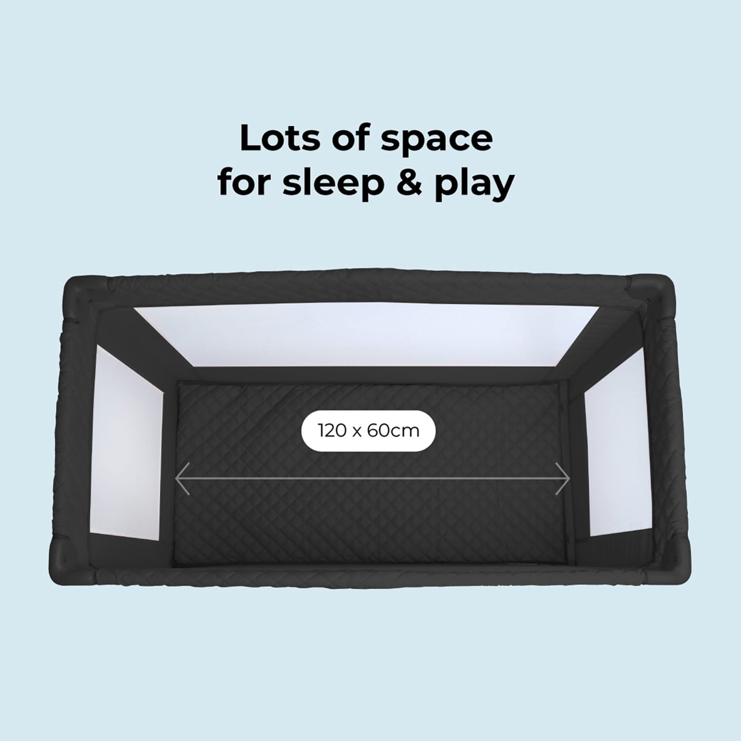 The My Babiie travel cot features breathable mesh sides, providing excellent ventilation and allowing you to keep an eye on your baby. This design ensures a comfortable and safe environment for restful sleep.