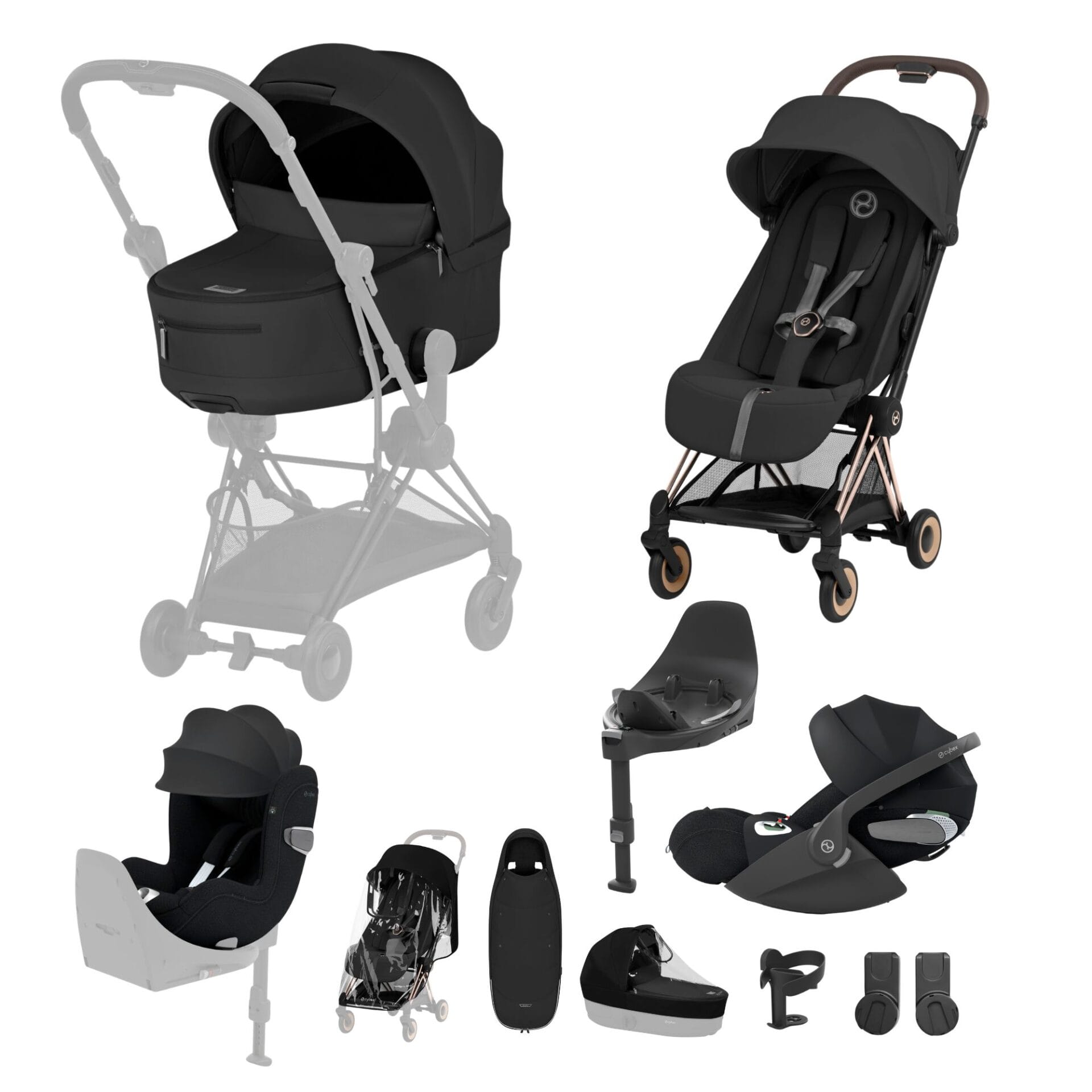 NEW CYBEX Coya Ultimate Birth & Beyond Bundle Comfort Collection – Rose Gold – Sepia Black