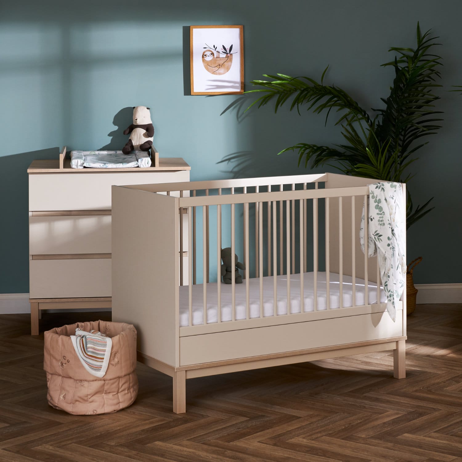 The Obaby Astrid mini cot bed will grow with your little one. Suitable from birth until around 4 years old.