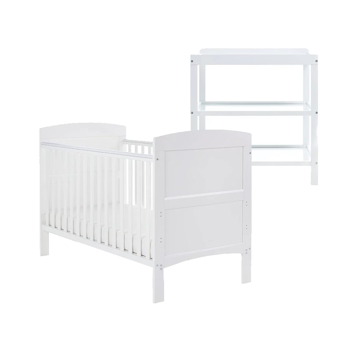 The Obaby Grace 2 piece furniture set, consisting of a Grace cot bed and open changing unit, balances fantastic quality with great value and provides parents with a range of valuable features.