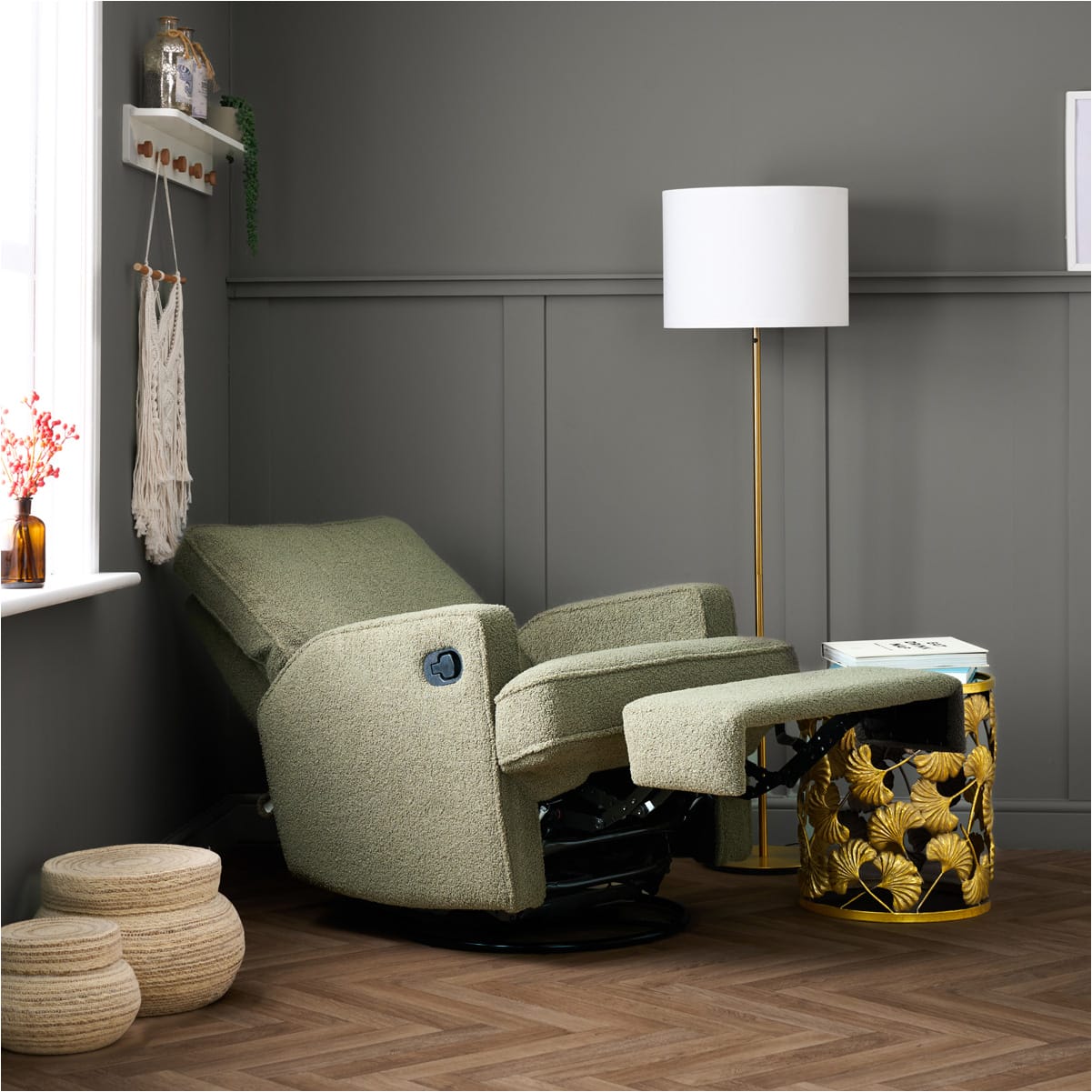 The Obaby Madison Recliner Nursery Chair now features an extra cosy upgrade with our soft teddy bear fabric in olive.