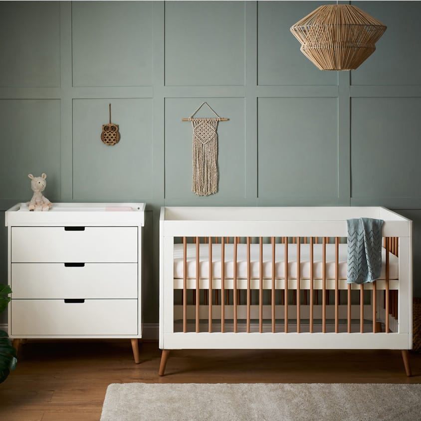 The Maya range from Obaby is inspired by Scandinavian design, featuring a clean-cut finish and two-tone colourway, making it the perfect addition for families looking to create a modern and stylish nursery. The Maya 2 piece room set consists of the Maya cot bed and changing unit.