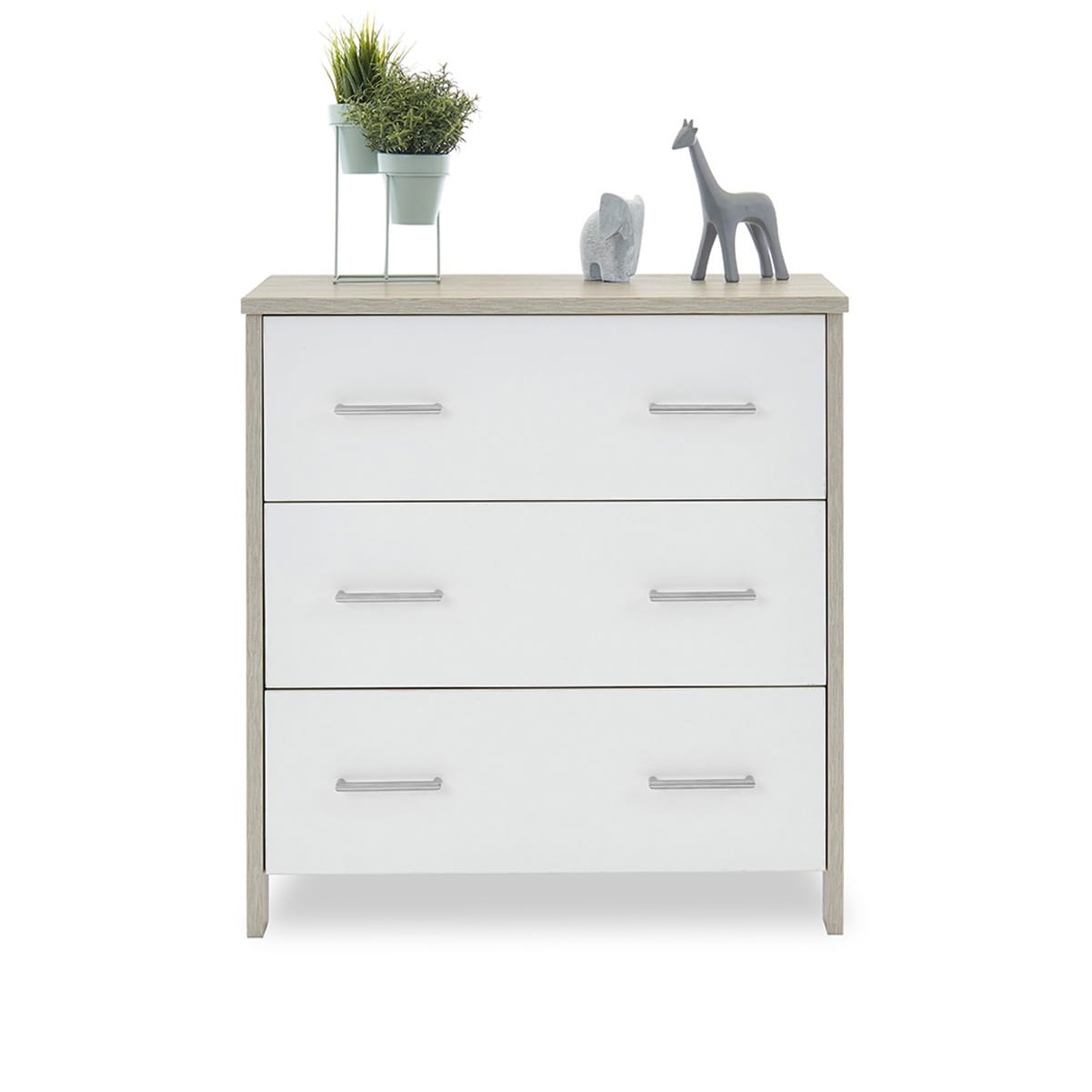 The Nika changing unit is a piece of furniture that can be used for years to come. Three large 32L capacity, full depth drawers offer plenty of space for changing essentials, toys and your little one’s precious possessions. All three drawers feature two brushed metal handles and glide on smooth runners allowing you to easily open them with either hand.