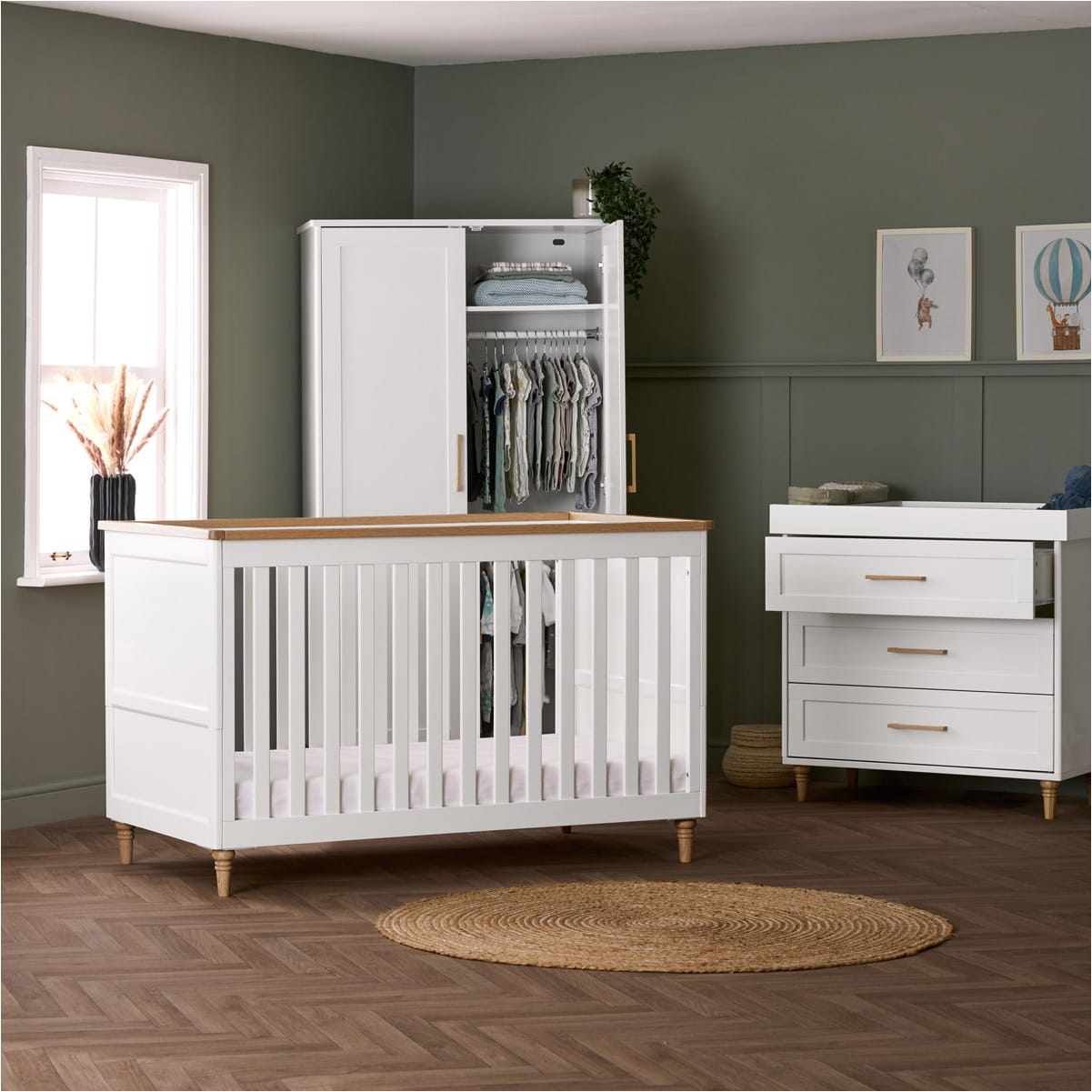 Complete your nursery with the Orla Wardrobe, featuring a spacious shelf and dual hanging rails for clothes, accessories, and everything in between. This wardrobe isn’t just about storage; it’s crafted to look stunning while keeping essentials neatly within reach.